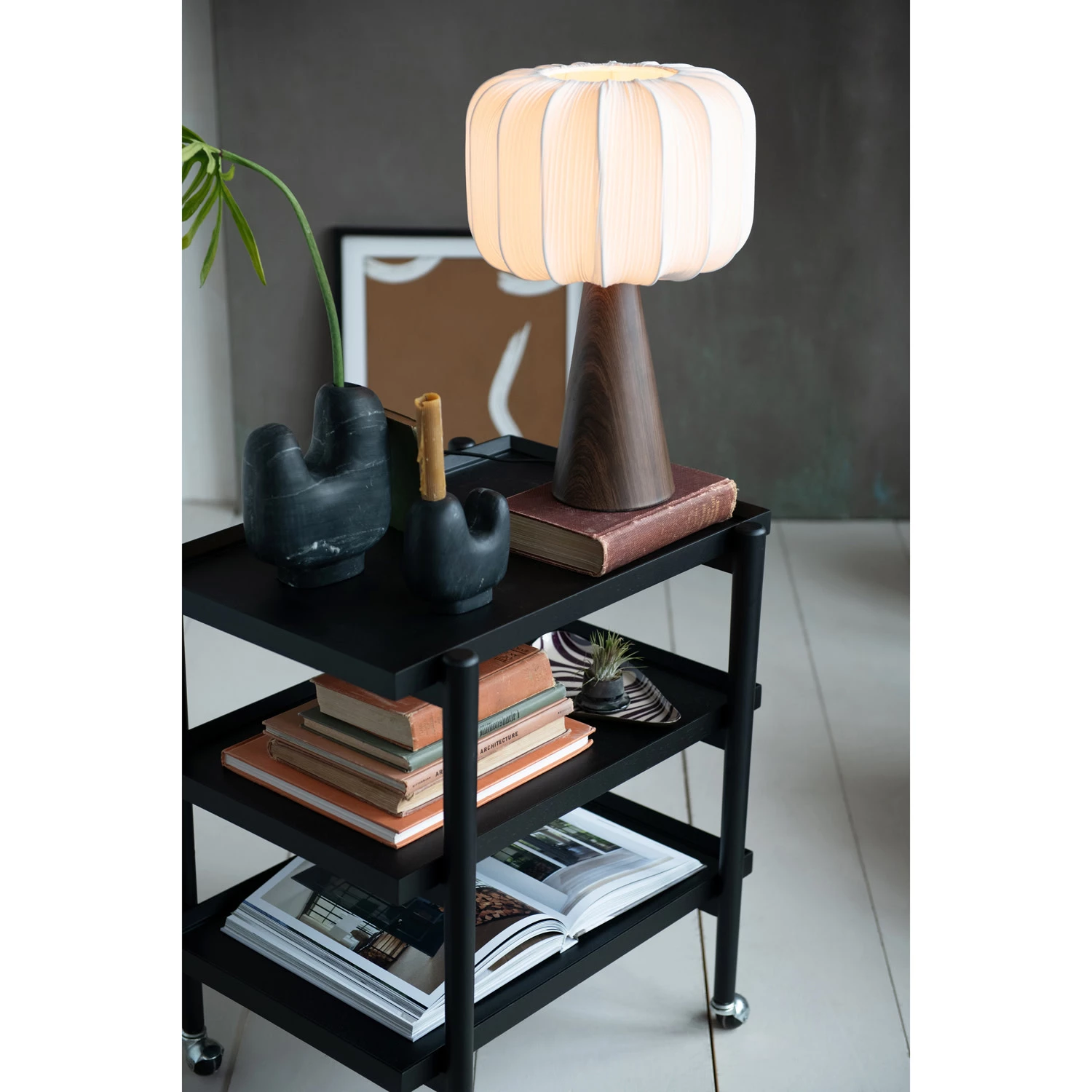 Metal Table Lamp w/ Pleated Fabric Shade & Inline Switch, Wood Finish