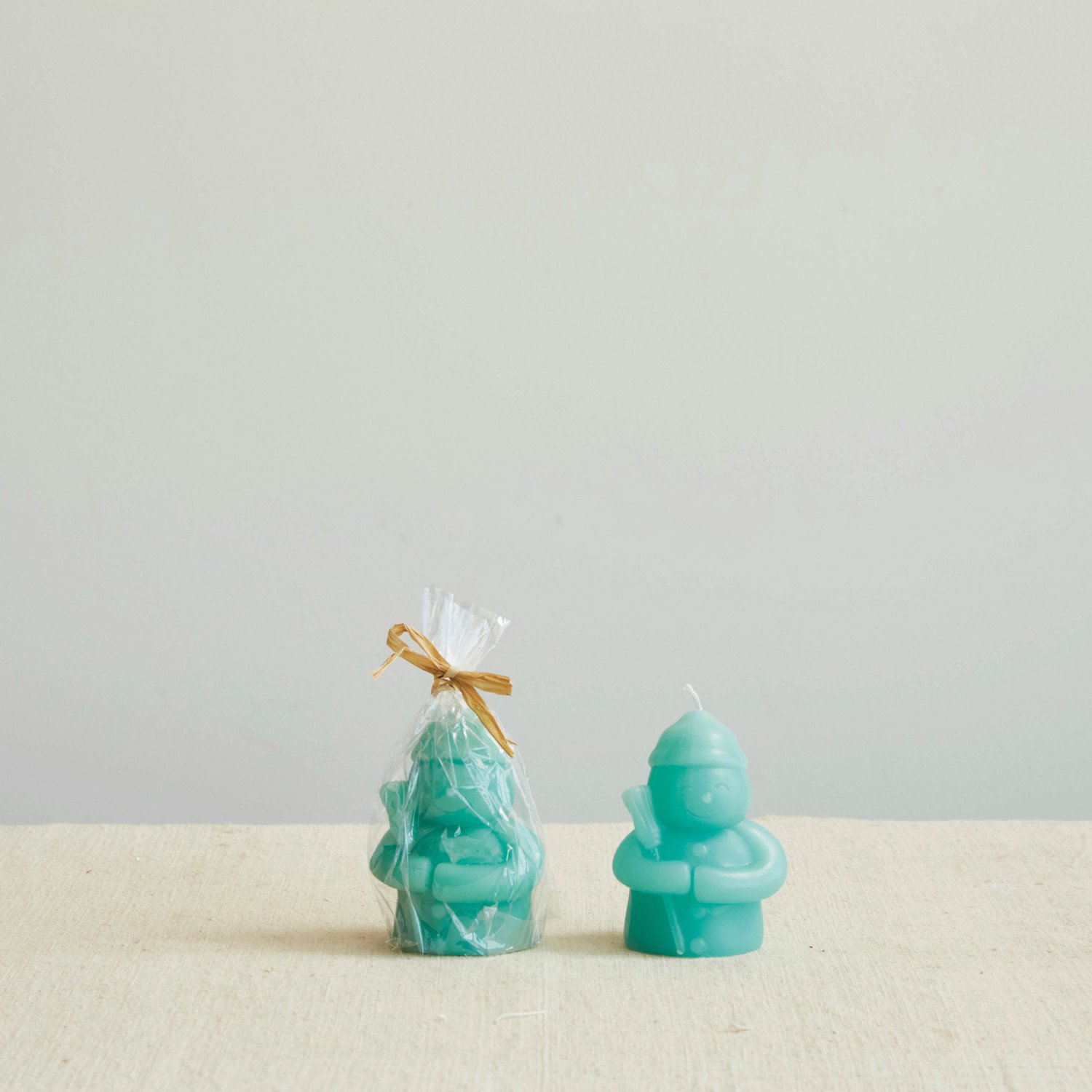 Catalog Name: 3"L x 2-1/4"W x 4"H Unscented Snowman Shaped Candle, Aqua (Approximate Burn Time 7 Hours)