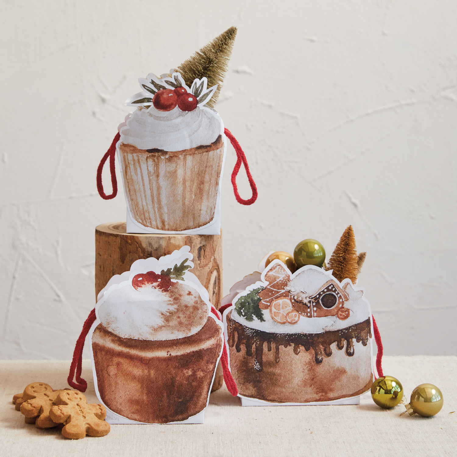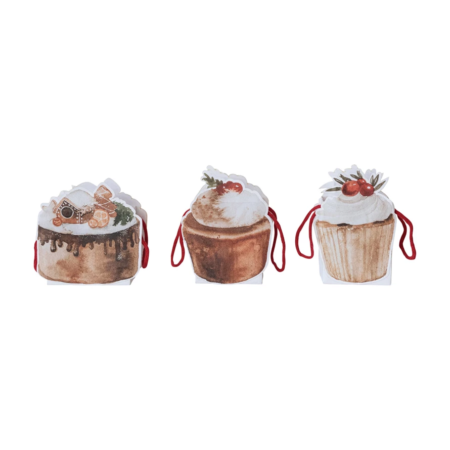 Catalog Name: 4-1/2"H - 6-1/4"H Printed Recycled Paper Cake Shaped Gift Bag, Multi Color, 3 Styles