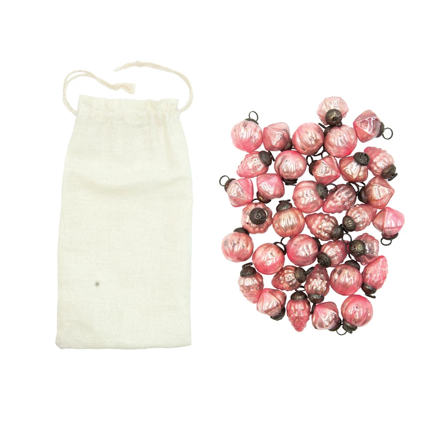 1"H Embossed Mercury Glass Ornaments in Muslin Bag, Pink, Set of 36