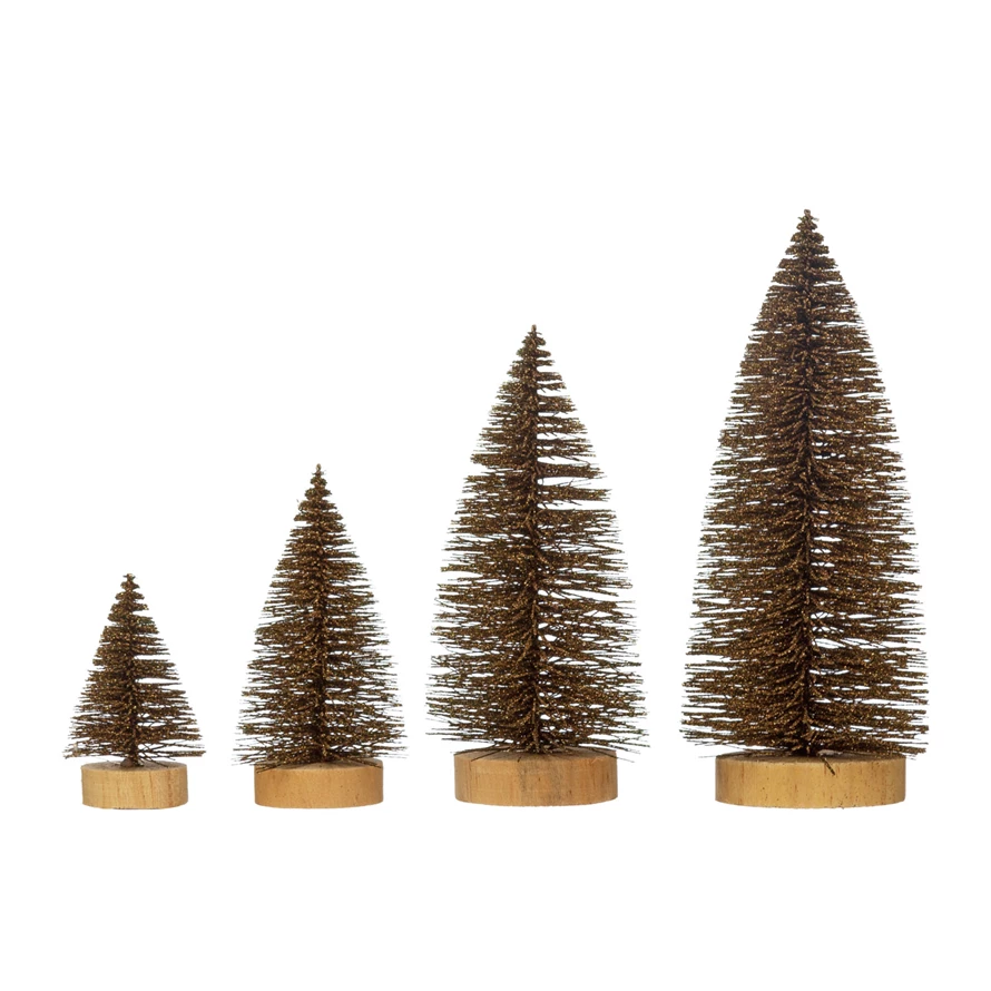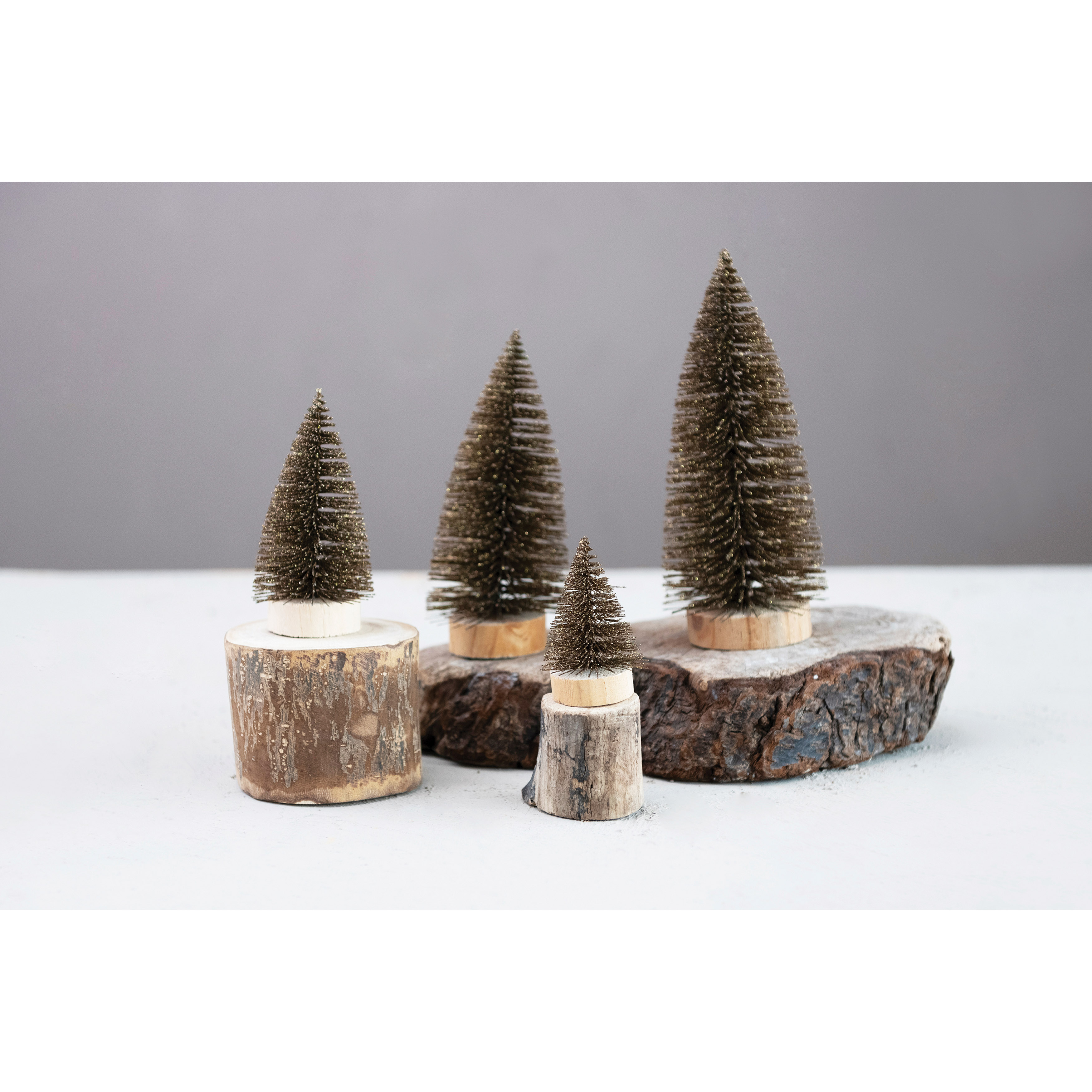Catalog Name: 3-3/4" Round x 8-1/2"H, 3-1/4" Round x 6-1/2"H, 2-1/2" Round x 4-3/4"H and 2" Round x 3"H Plastic Bottle Brush Trees with Wood Bases, Brown, Set of 4