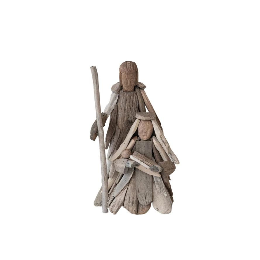 Handmade Driftwood Holy Family, Natural (Each One Will Vary)