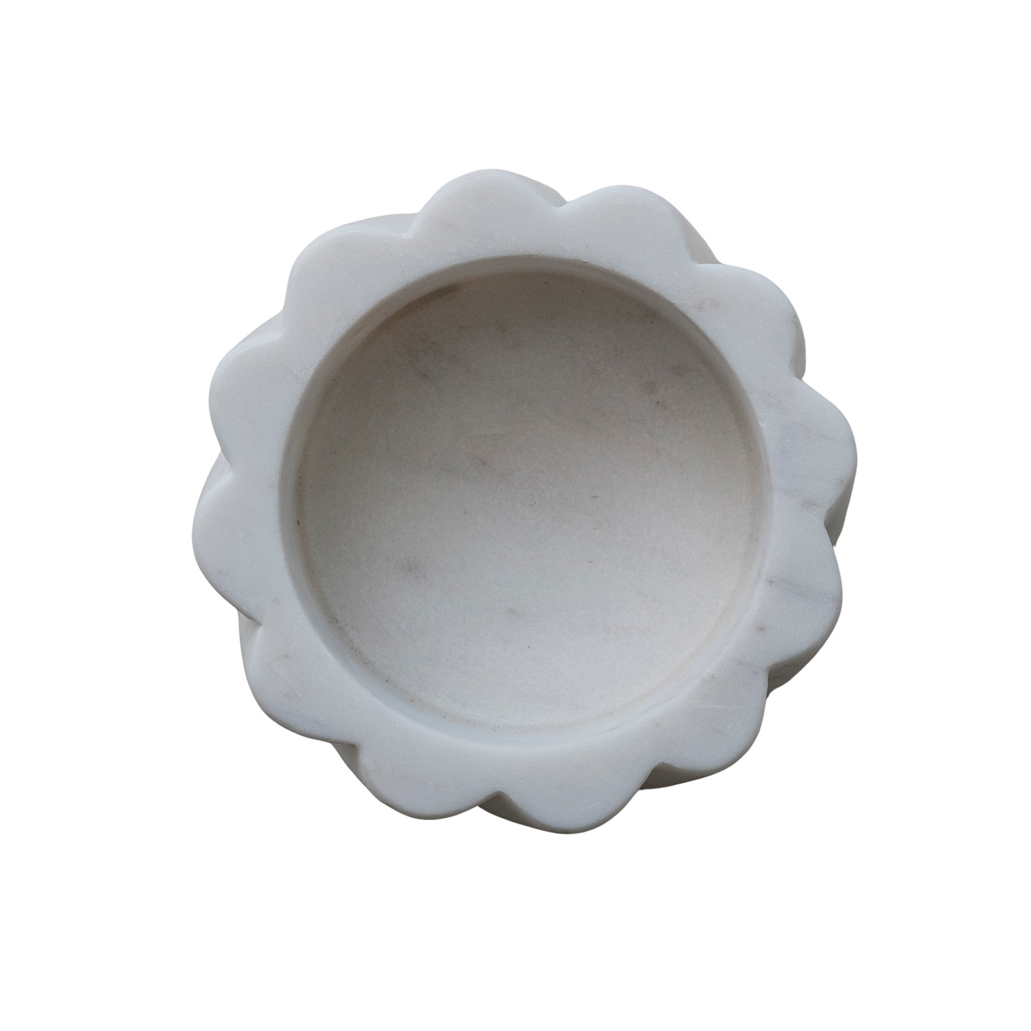 Catalog Name: 5-1/2" Round x 2-1/4"H Marble Twisted Carved Scalloped Bottle Holder, White