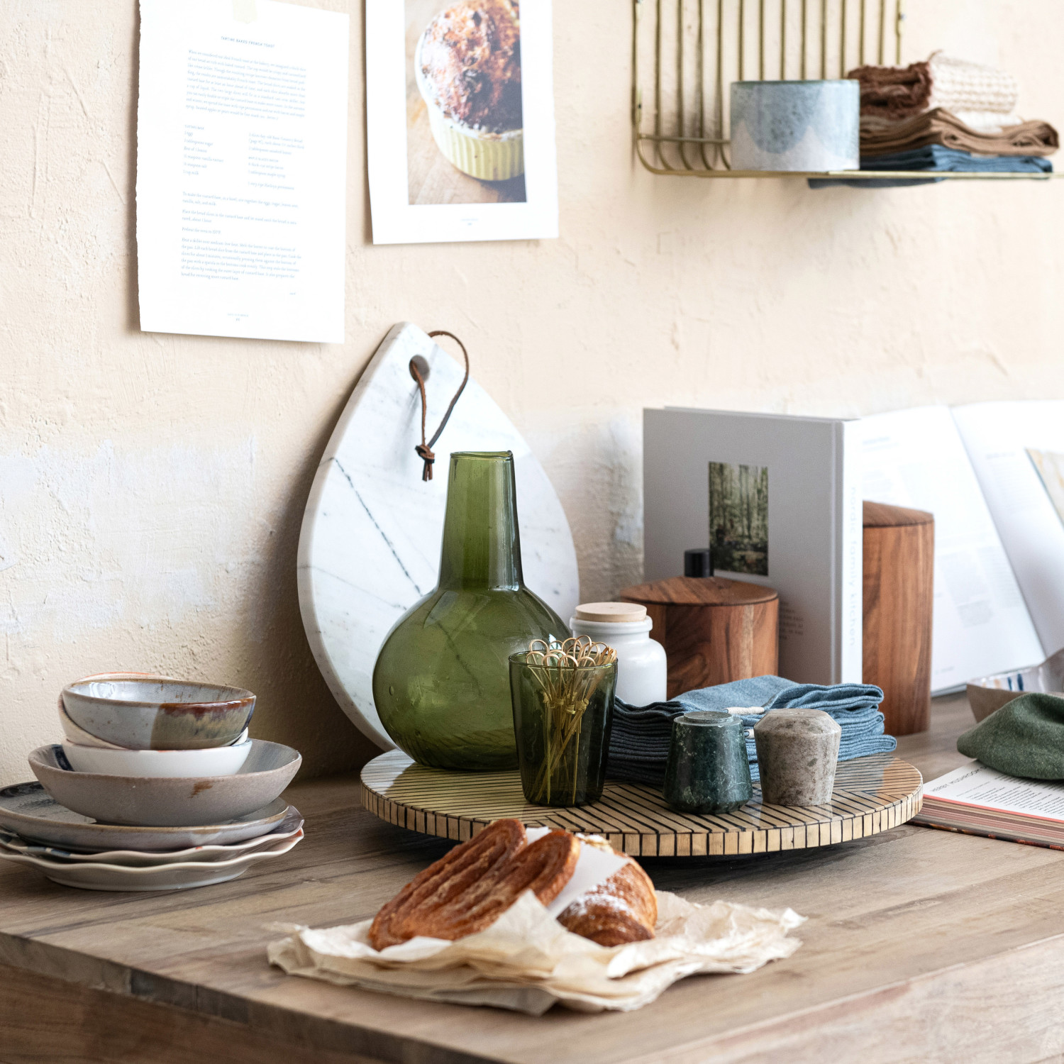 This White Mélange Marble Board with Handle is a versatile and stylish addition to any home. Crafted from food-safe marble, each board boasts a unique white mélange pattern, ensuring no two pieces are exactly alike. The 14.00-inch-long, 12.00-inch-wide surface offers plenty of room for slicing bread, chopping vegetables, or arranging a cheese platter. The added convenience of a handle and leather tie allows for easy storage or display when not in use. Whether used for cutting or serving, this marble board is a functional piece of art that will enhance the experience of preparing and sharing food.
