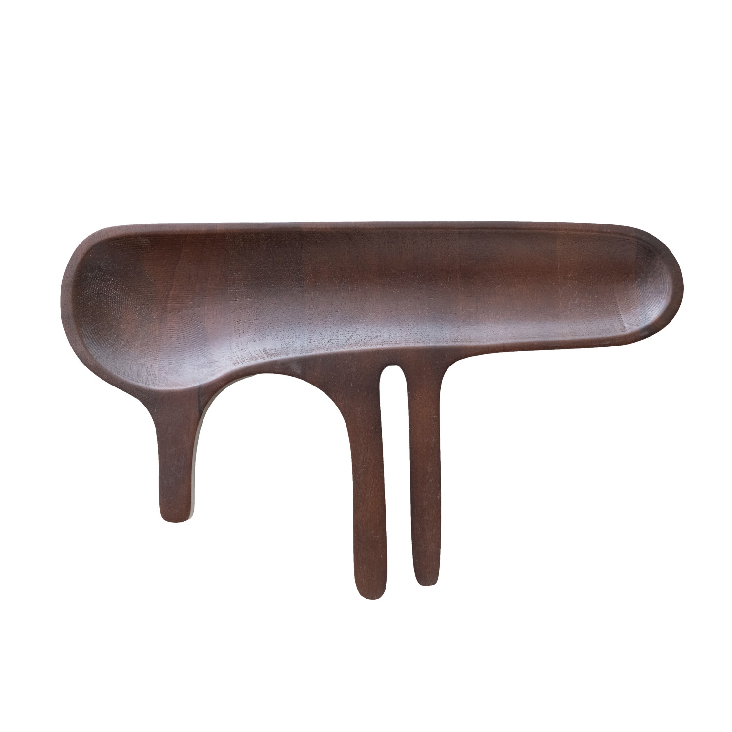 Mango Wood Abstract Shaped Serving Dish with Handles, Walnut Finish