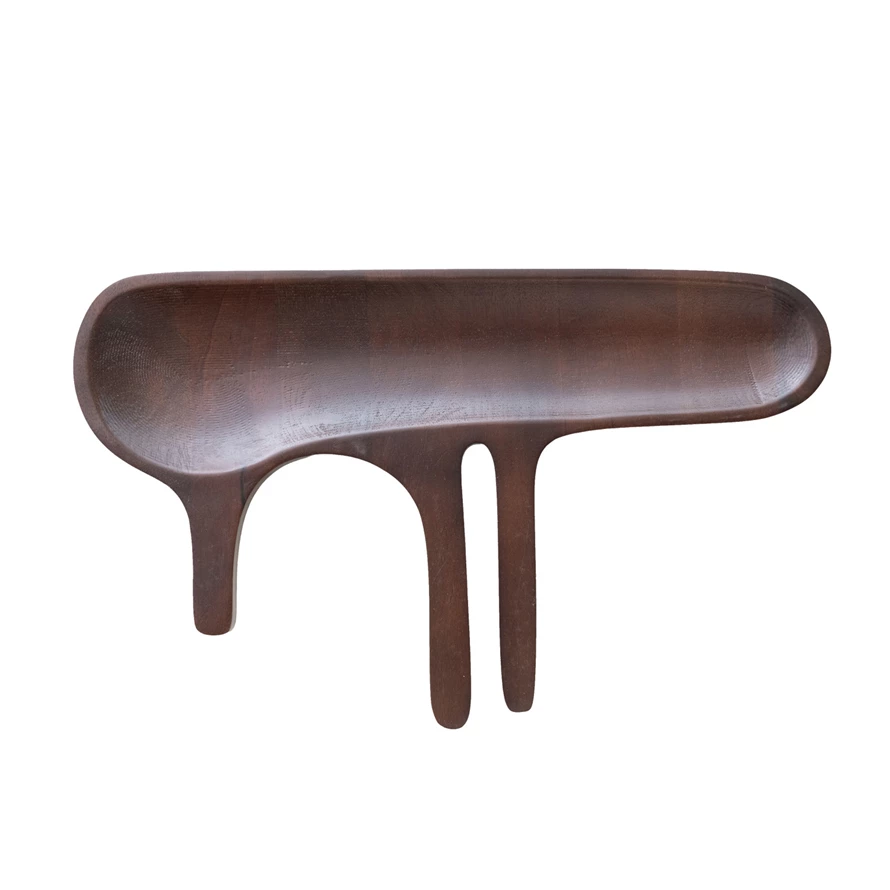 Catalog Name: 18"L x 11"W Mango Wood Abstract Shaped Serving Dish w/ Handles, Walnut Finish