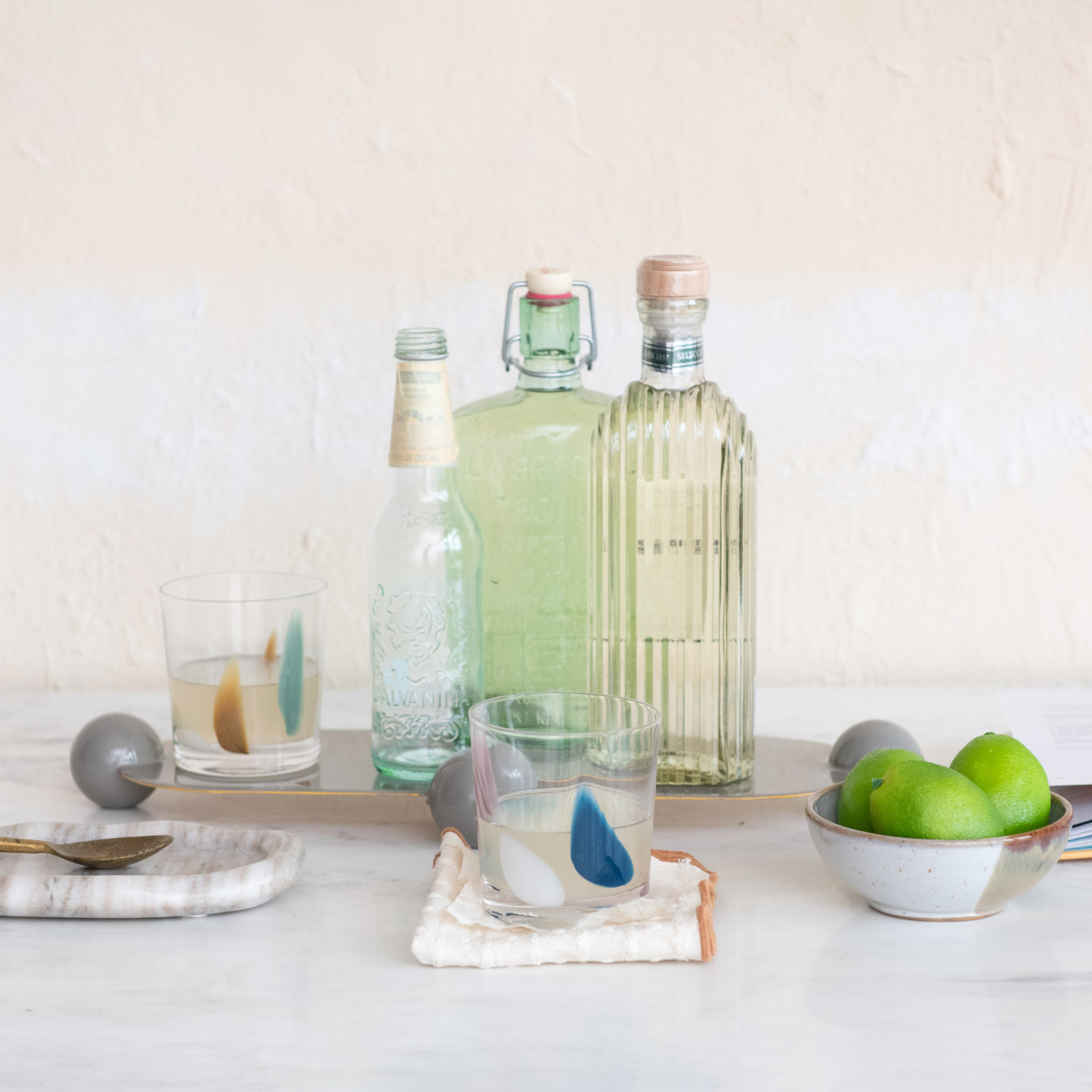 This exquisite Handmade Art Glass Drinking Glass is a masterpiece in miniature. A captivating blend of green, yellow, clear, and white swirls within its form, creating a vibrant and unique piece that is as much a work of art as it is functional. Measuring a comfortable 3.5 inches in diameter and standing at a graceful 4 inches tall, this 12-ounce glass is perfect for enjoying a refreshing iced tea, a crisp glass of white wine, or any beverage. This versatile glass is not just a vessel for drinks; it is a conversation starter and a captivating addition to any table setting. Whether indulging in a casual brunch with friends or hosting a formal dinner party, this art glass masterpiece elevates the everyday and transforms any dining experience into a celebration of artistry and shared moments.