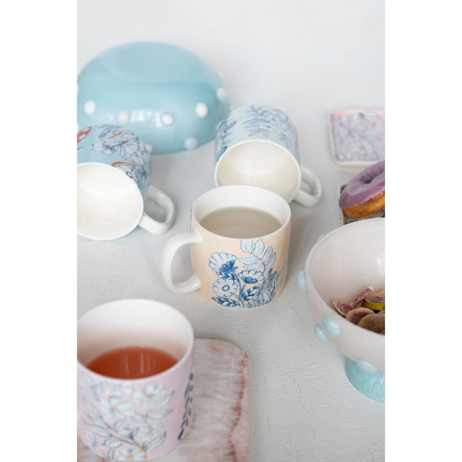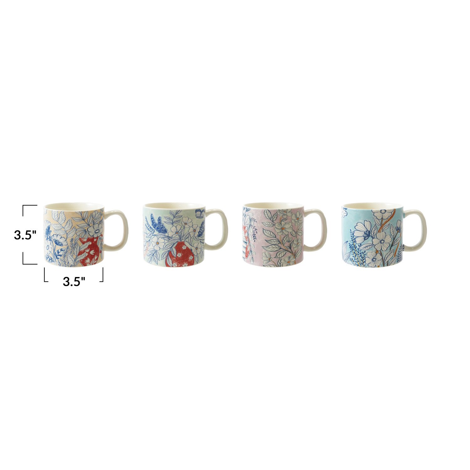 14 oz. Stoneware Mug w/ Flowers, 4 Styles