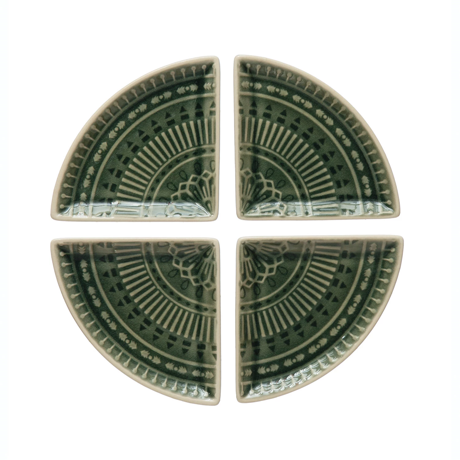 Catalog Name: 4-1/4"L x 4-1/4"W Debossed Stoneware Dishes, Crackle Glaze, Green, Set of 4 (Each One Will Vary)