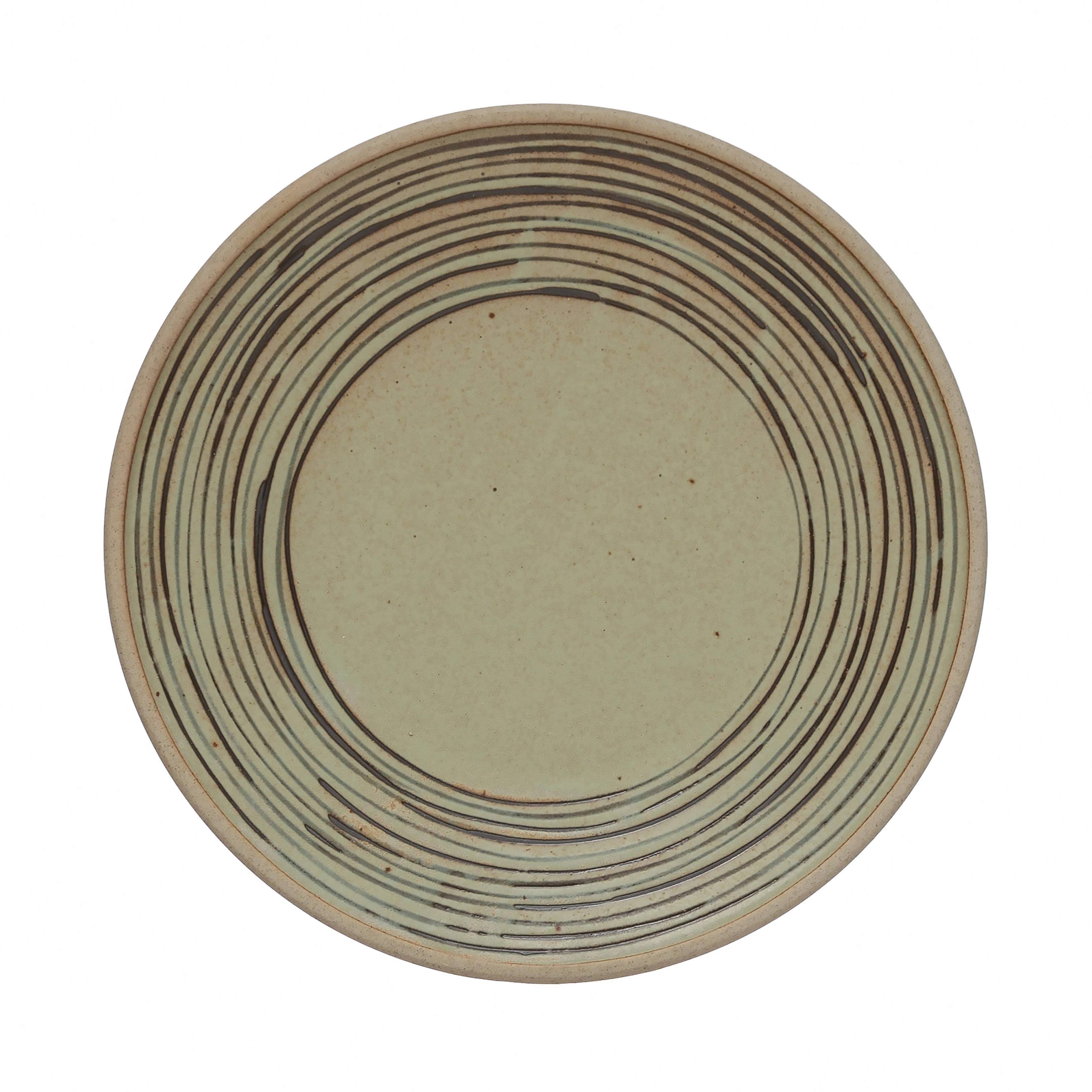 Hand-Painted Stoneware Organic Striped Plate, Reactive Glaze