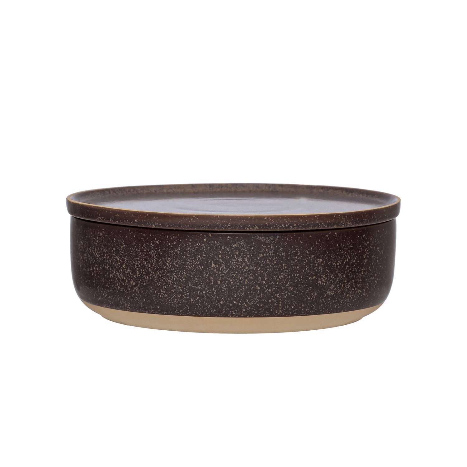 Brown stoneware bowl with lid in a reactive glaze. Beautifully corral small everyday items, or decoratively display dried botanicals in this striking accent bowl. Made from 100% stoneware. Curate a space that reflects your unique sense of style with intentionally designed home décor.