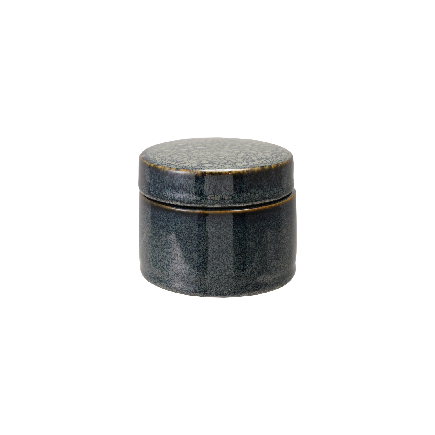 Catalog Name: 3-1/2" Round x 2-3/4"H Stoneware Jar w/ Lid, Reactive Glaze, Blue (Each One Will Vary)