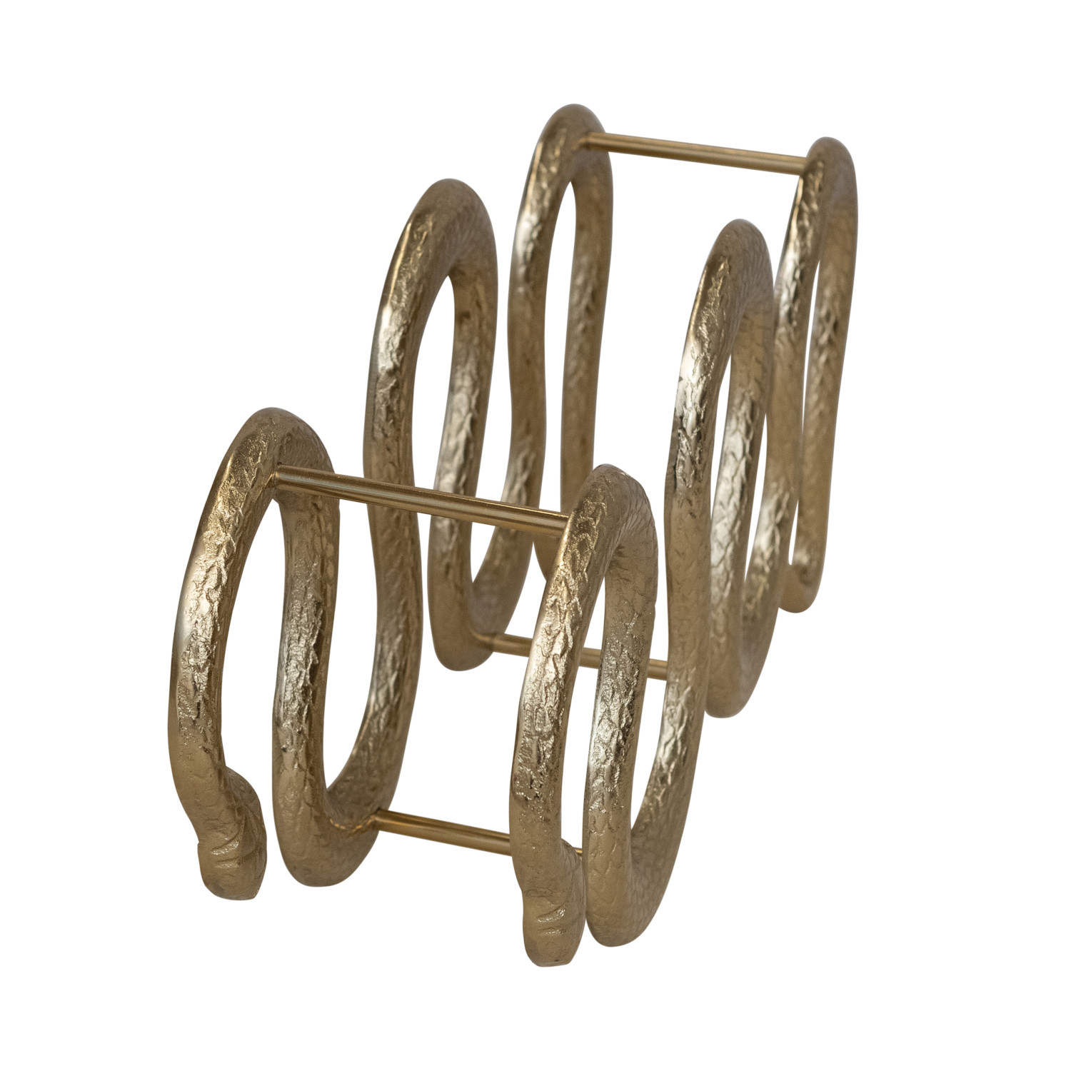 Cast Aluminum Snake Shaped Bottle Holder, Gold Finish (Holds 5 Bottles)