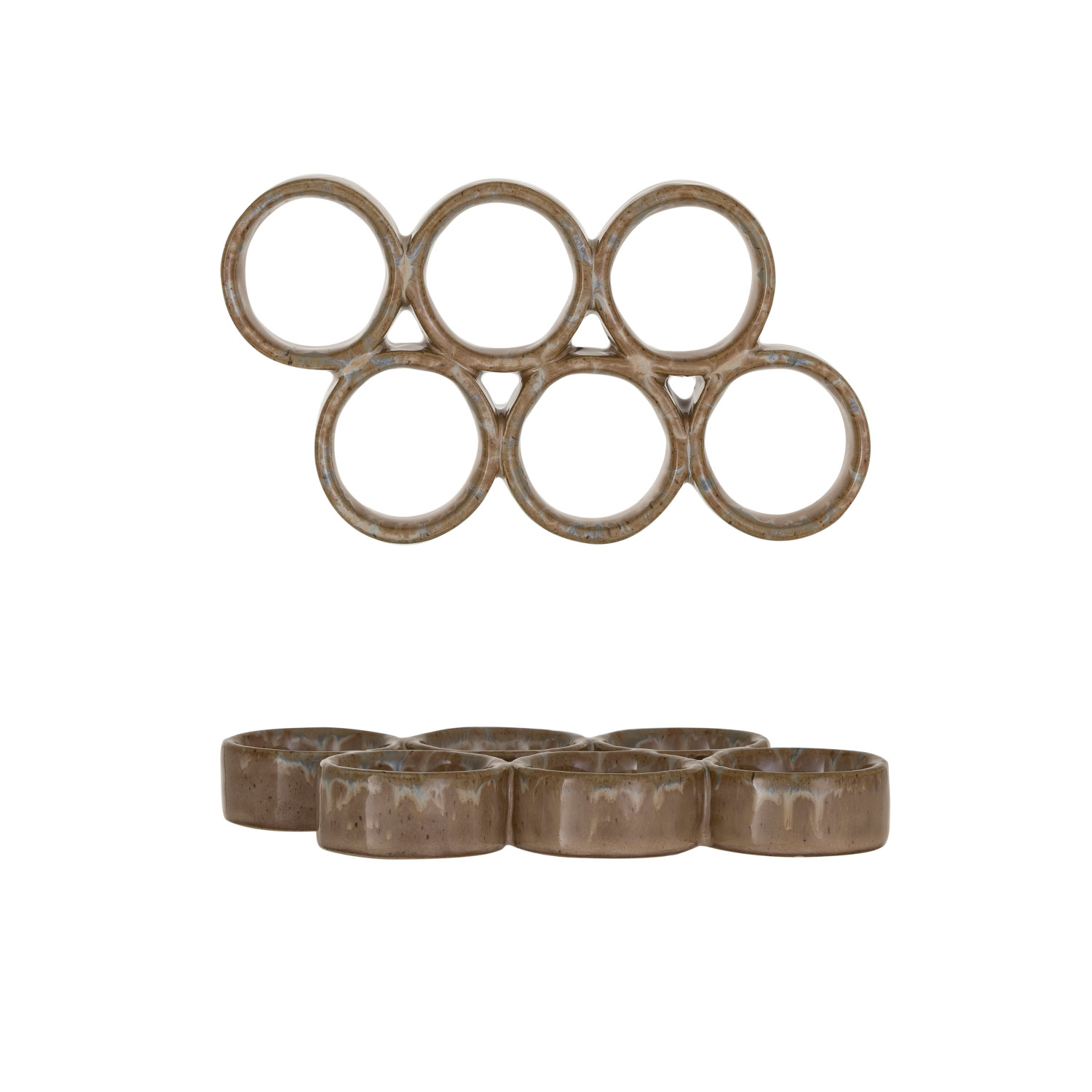 Catalog Name: 6-1/4"L x 3-1/4"W Stoneware Egg Holder, Reactive Glaze, Brown & Blue (Holds 6 Eggs) (Each One Will Vary)