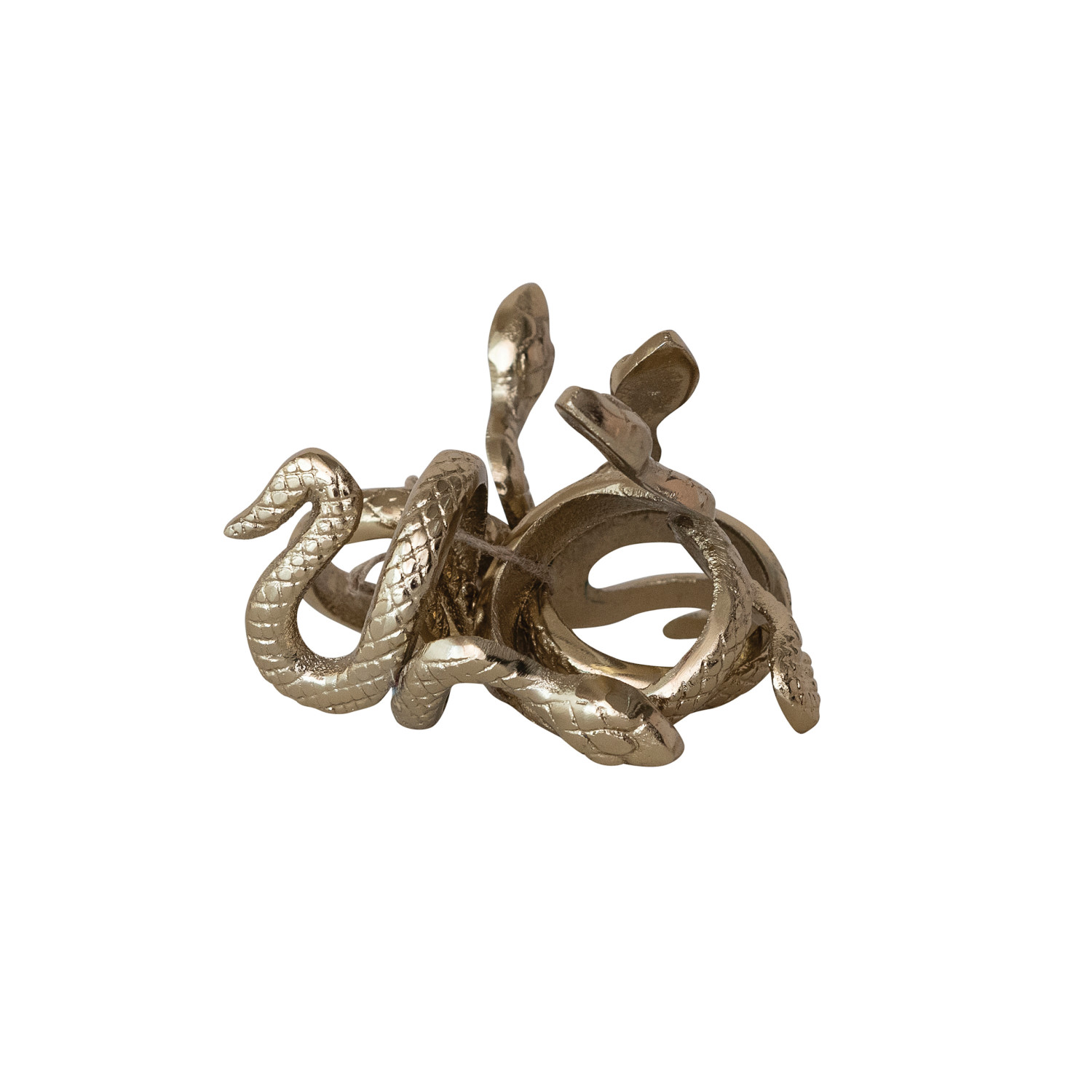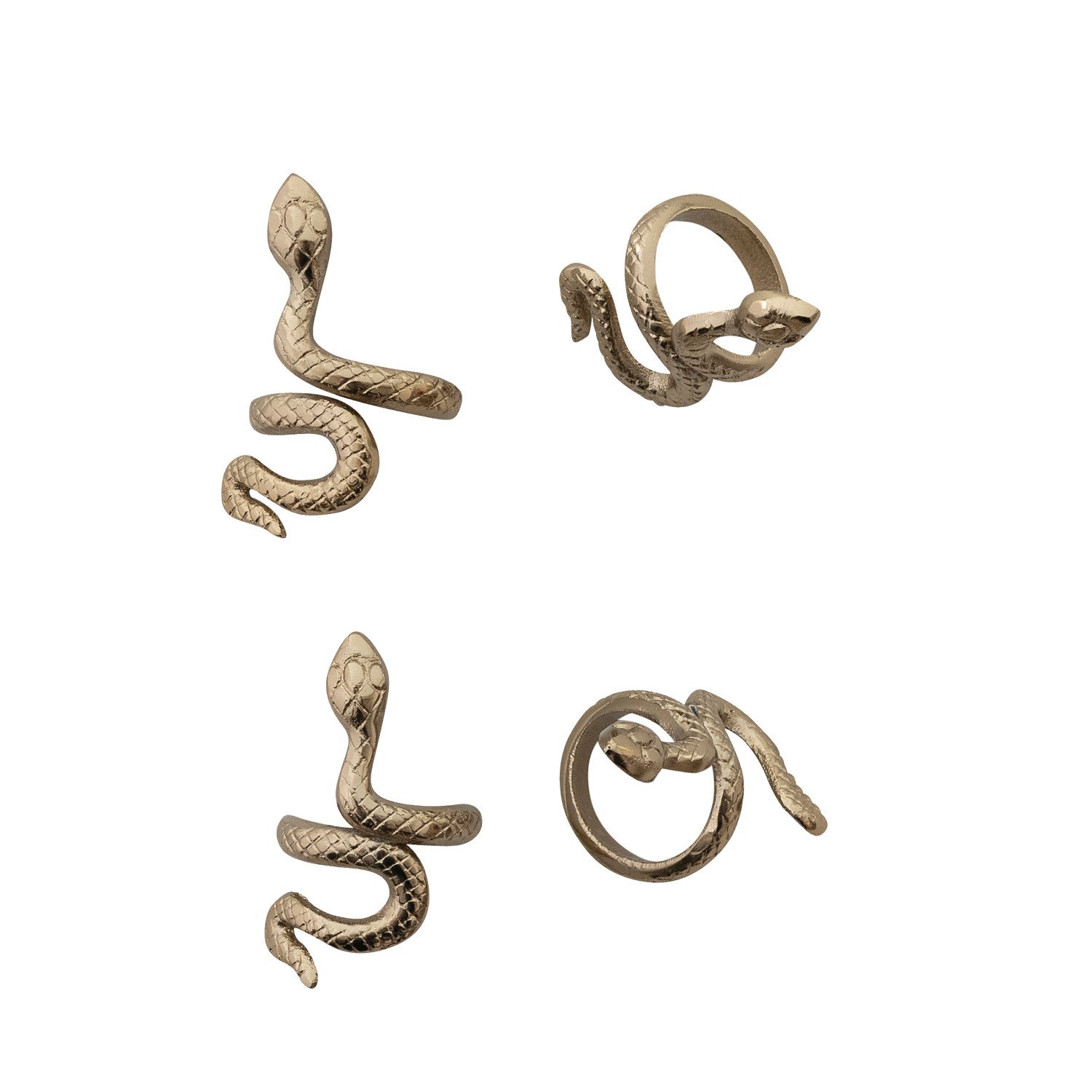 Cast Aluminum Snake Shaped Napkin Rings, Gold Finish, Set of 4 Tied with Jute