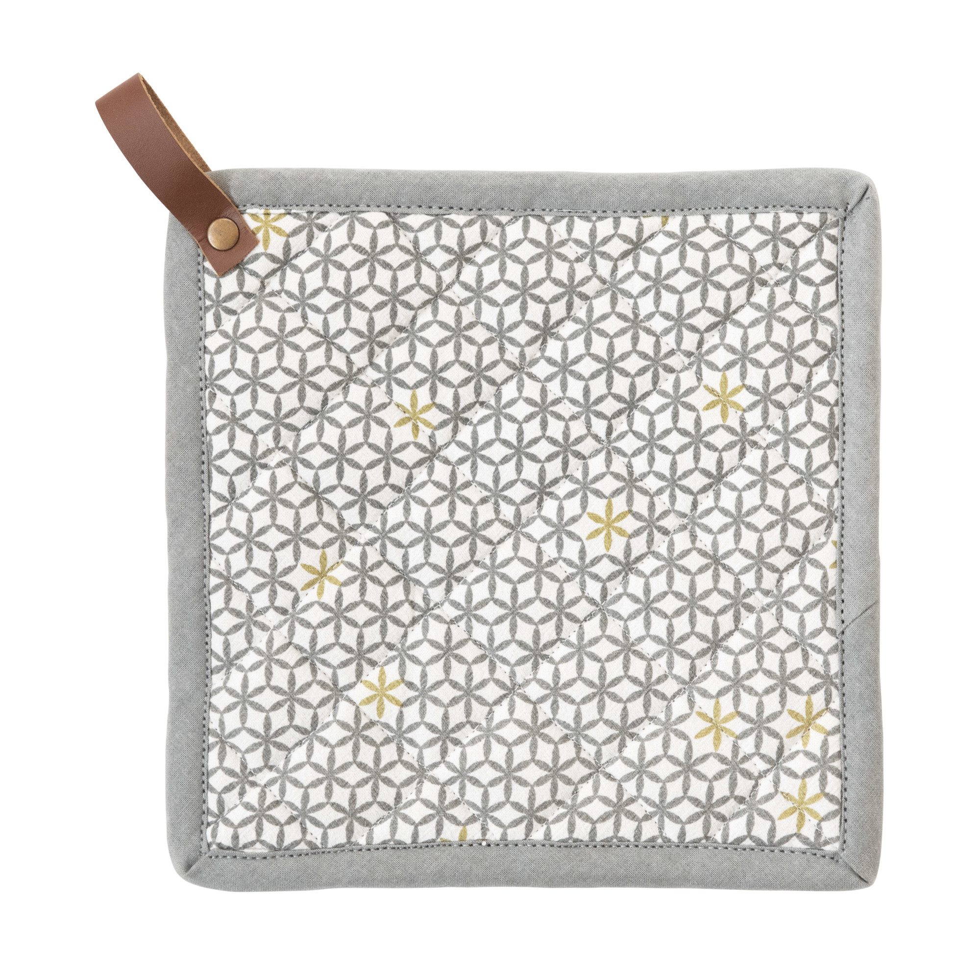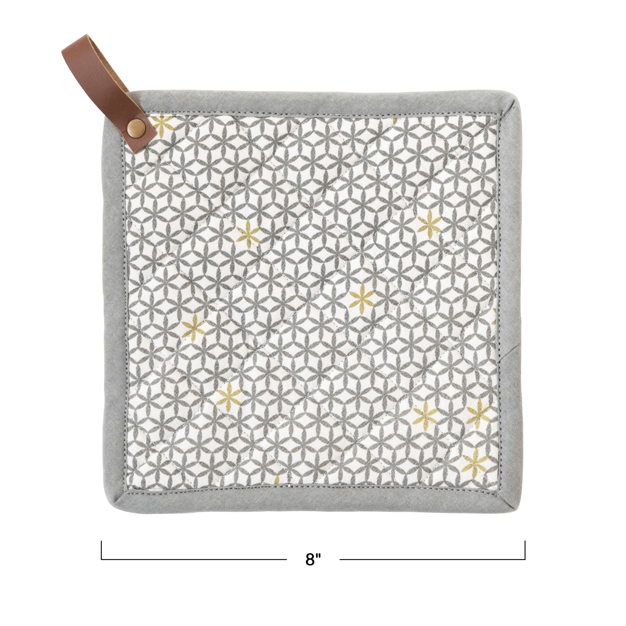 Square Cotton Pot Holder with Leather Loop