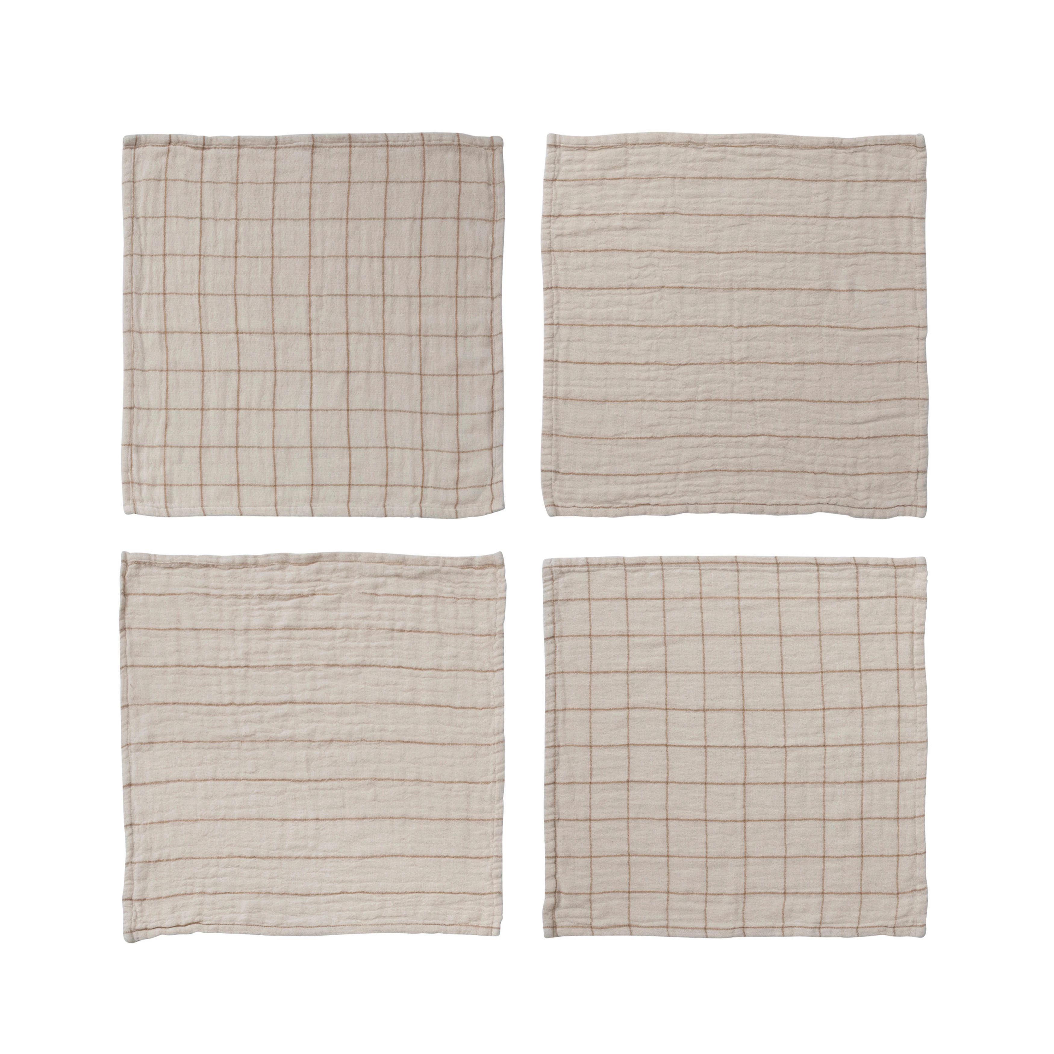 Cotton Double Cloth Napkins with Grid/Stripe Pattern, Set of 4