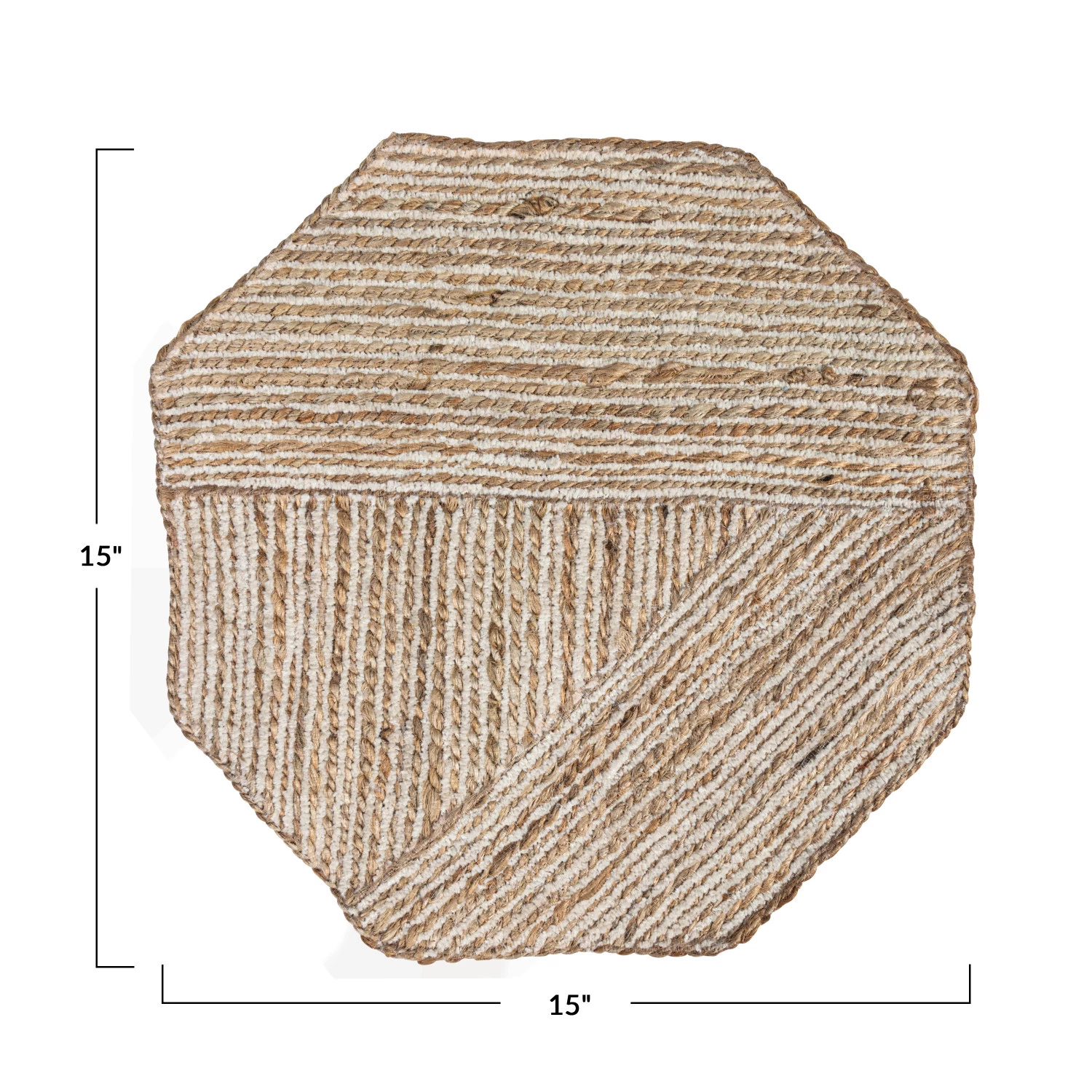 Catalog Name: 15"L x 15"W Cotton & Jute Embroidered Octagon Shaped Placemat, Natural & White