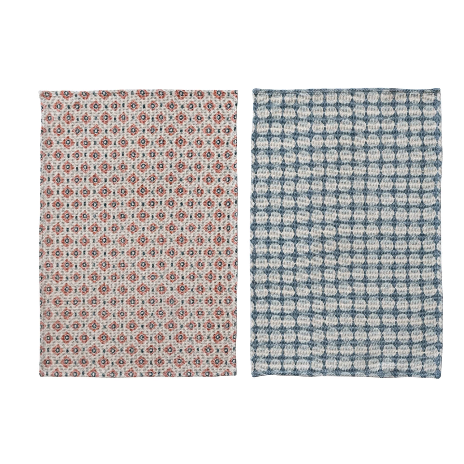 Cotton Waffle Weave Printed Kitchen Towel with Pattern, 2 Styles