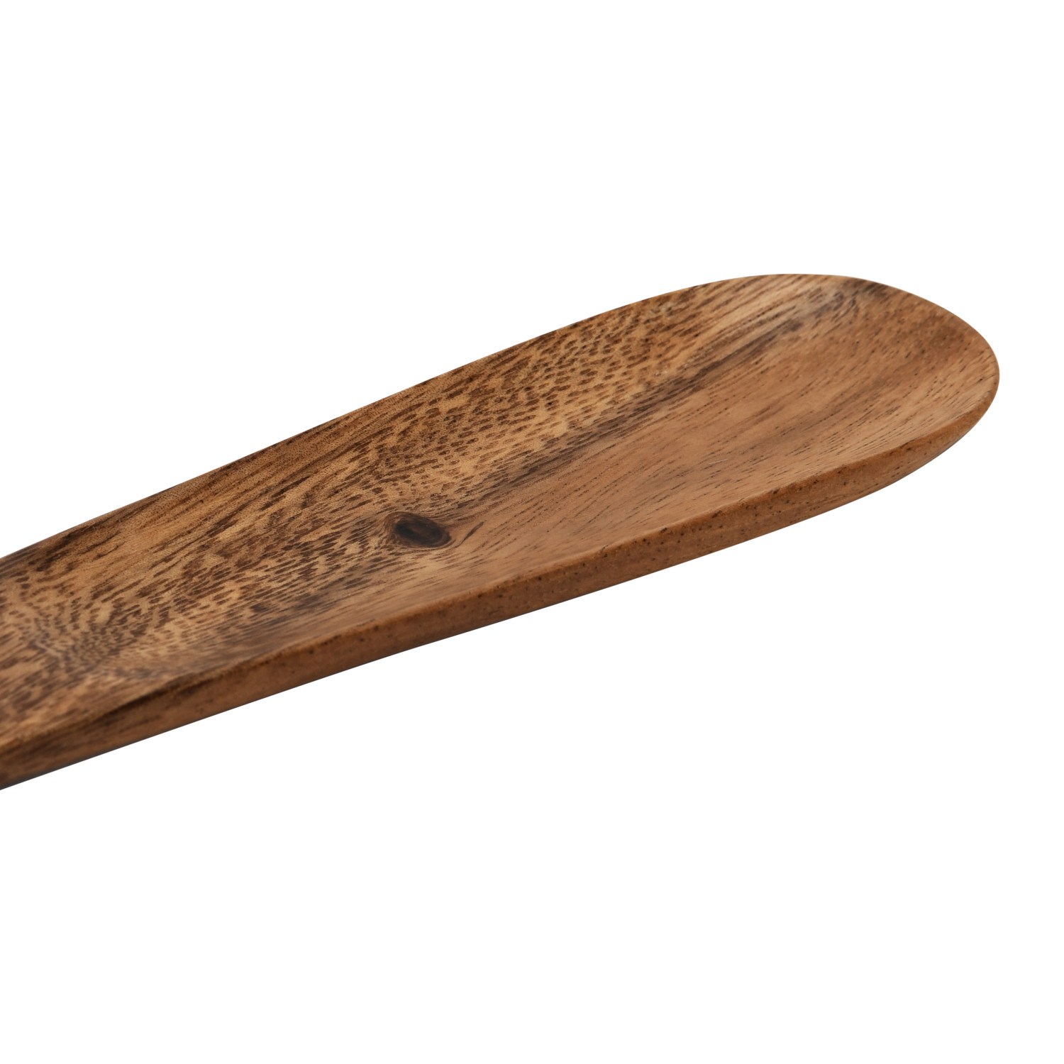 This strikingly modern wood scoop features masterfully hand carved acacia wood.