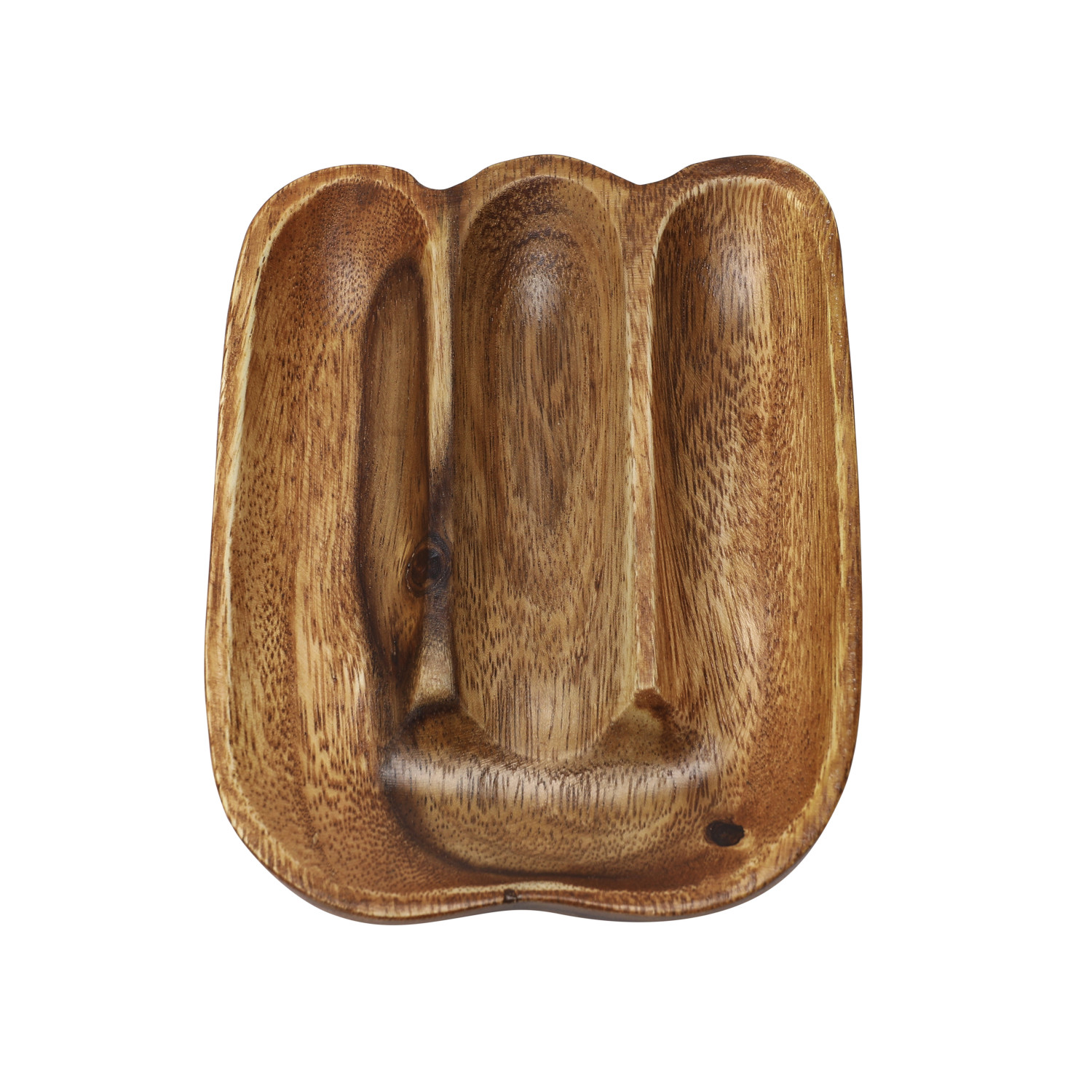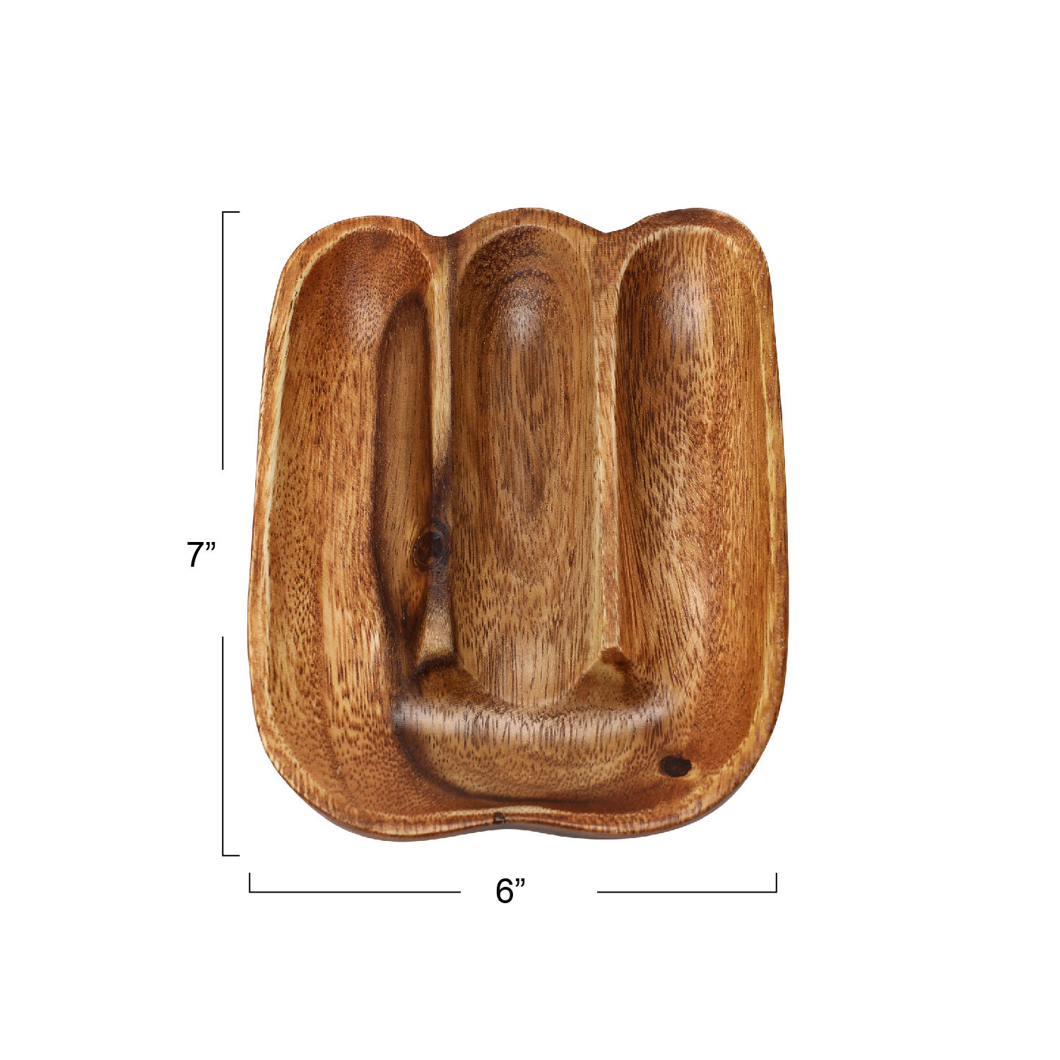 Catalog Name: 7"L x 5-1/2"W Acacia Wood Divided Serving Dish, Walnut Finish