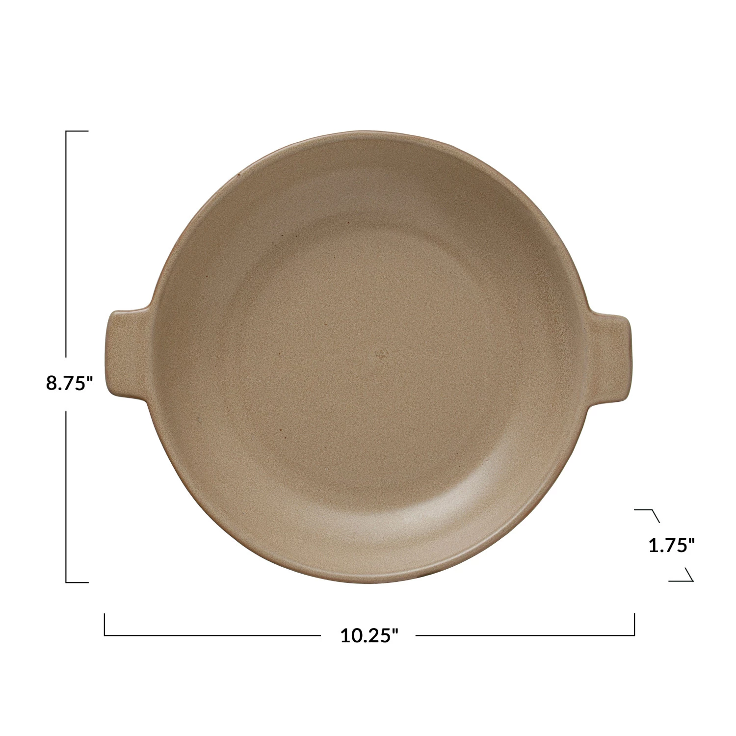 Catalog Name: 10-1/4"L x 8-3/4"W x 1-3/4"H Stoneware Plate w/ Handles, Reactive Glaze, Matte Beige (Each One Will Vary)