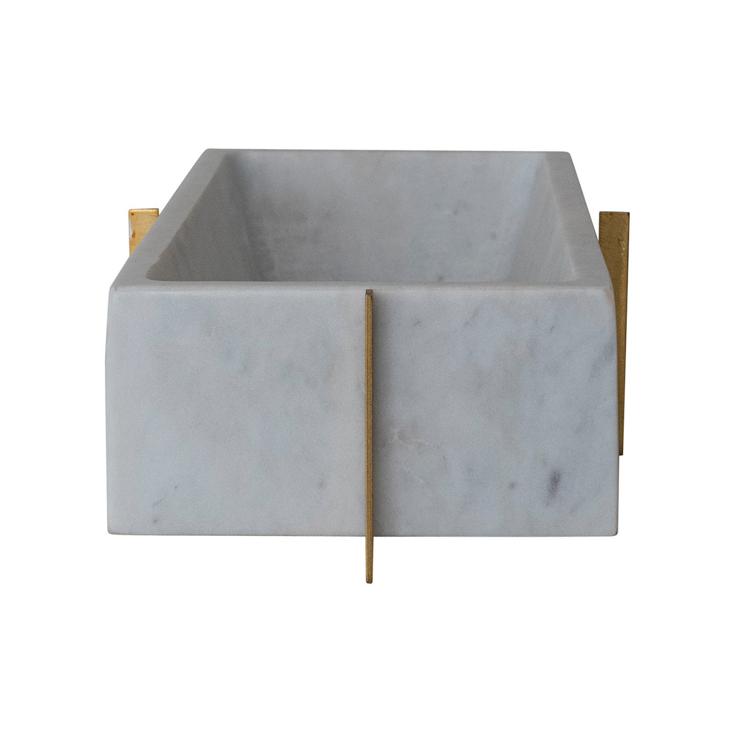 Catalog Name: 15"L x 6-1/2"W x 3"H Metal Stand w/ Removable Marble Container, Brass Finish & White, Set of 2