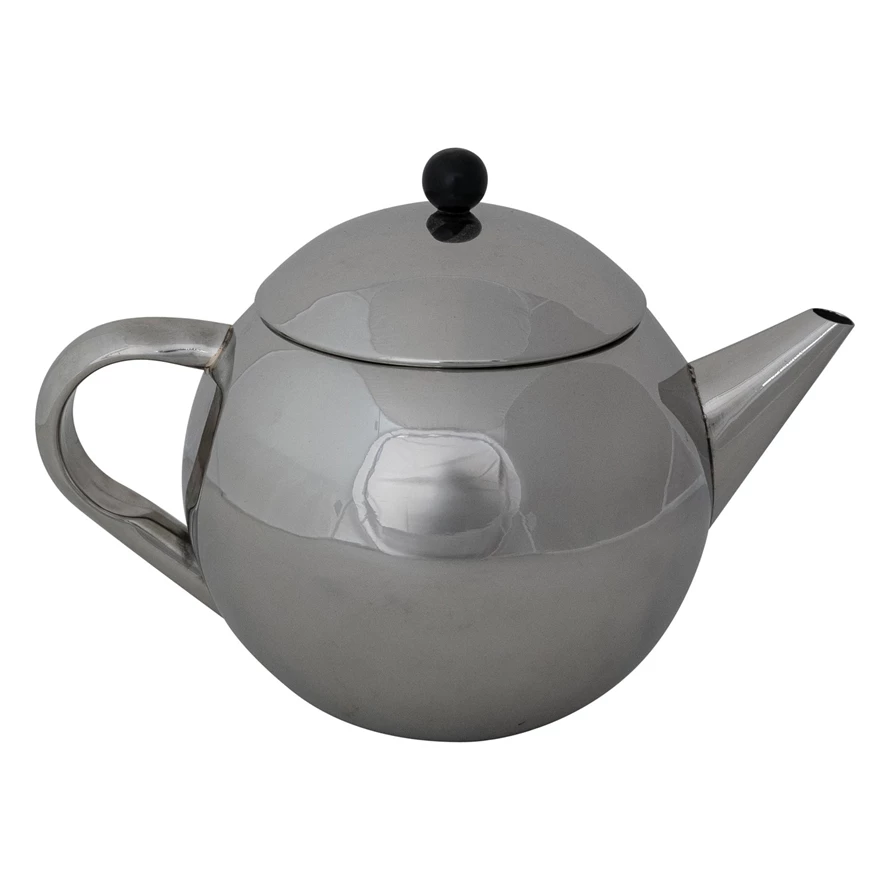 Catalog Name: 9"L x 6"W x 6-1/4"H 40 oz. Stainless Steel Teapot w/ Black Knob