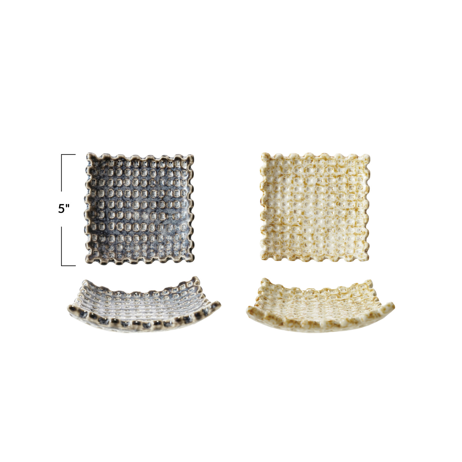 Catalog Name: 5" Square Debossed Stoneware Dish, Reactive Glaze, 2 Colors (Each One Will Vary)