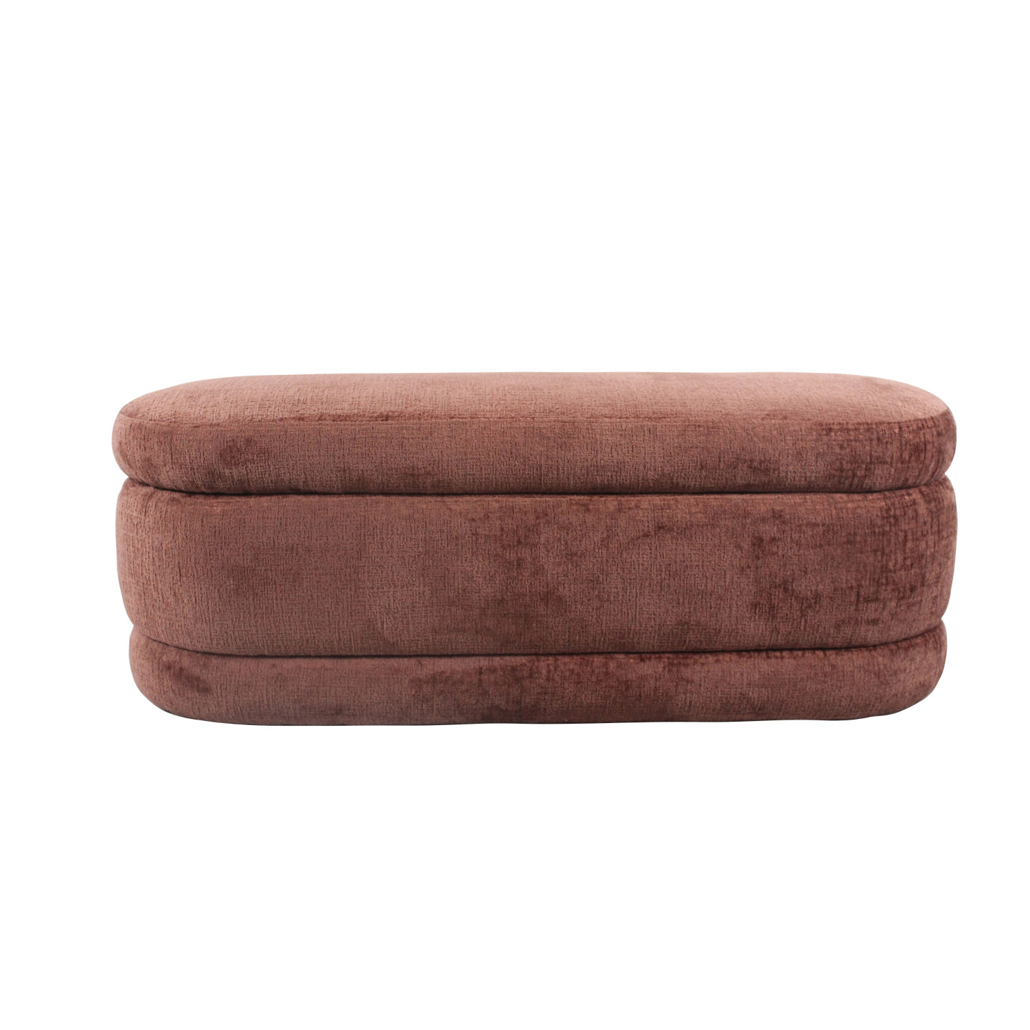 Chenille Fabric Upholstered Bench w/ Storage, Caramel Color, Truck Ship