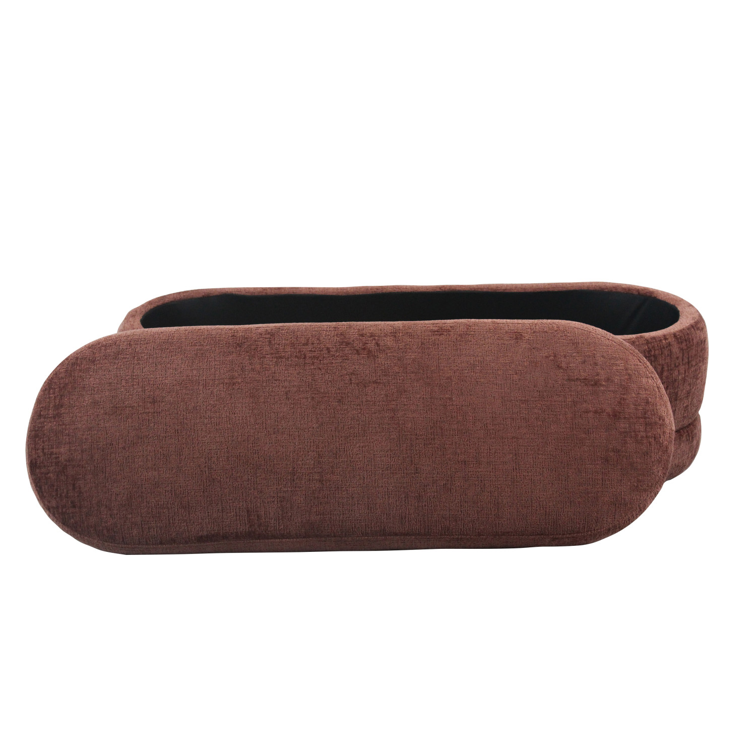 Catalog Name: 51"W x 18-1/4"D x 19"H Chenille Fabric Upholstered Bench w/ Storage, Caramel Color, Truck Ship