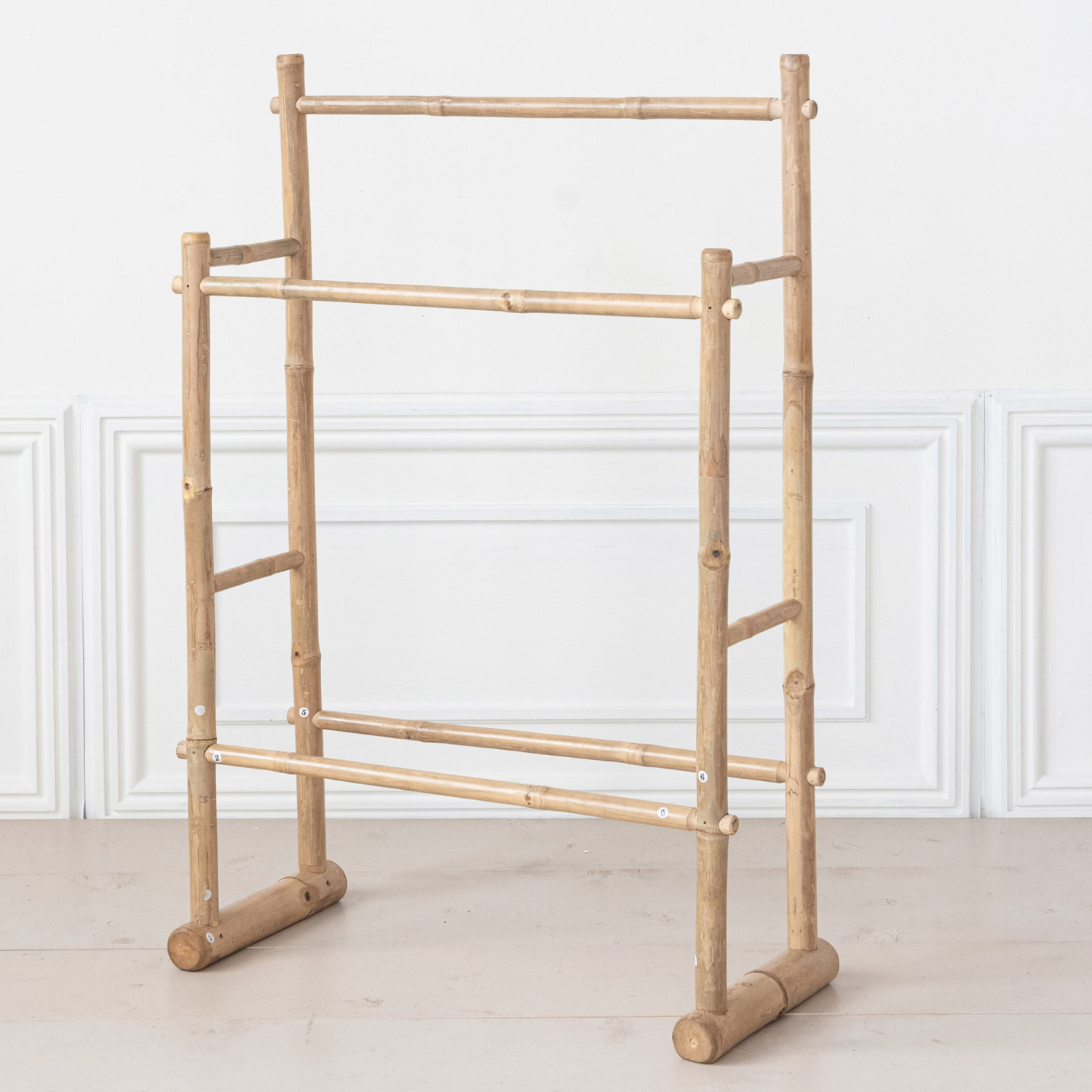Catalog Name: 27-1/2"L x 11-3/4"W x 41-1/4"H Bamboo Towel/Throw Rack w/ 2 Rods, Natural, KD