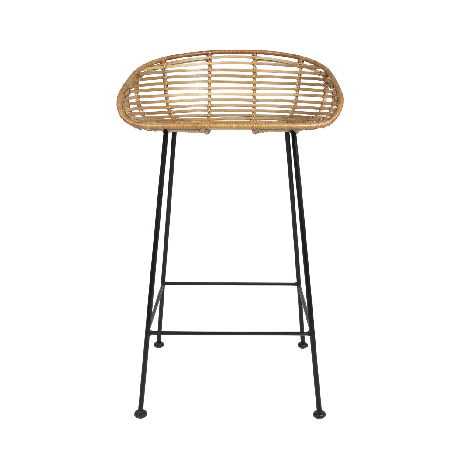 32"H Woven Rattan Bar Stool with Black Wrought Iron Legs
