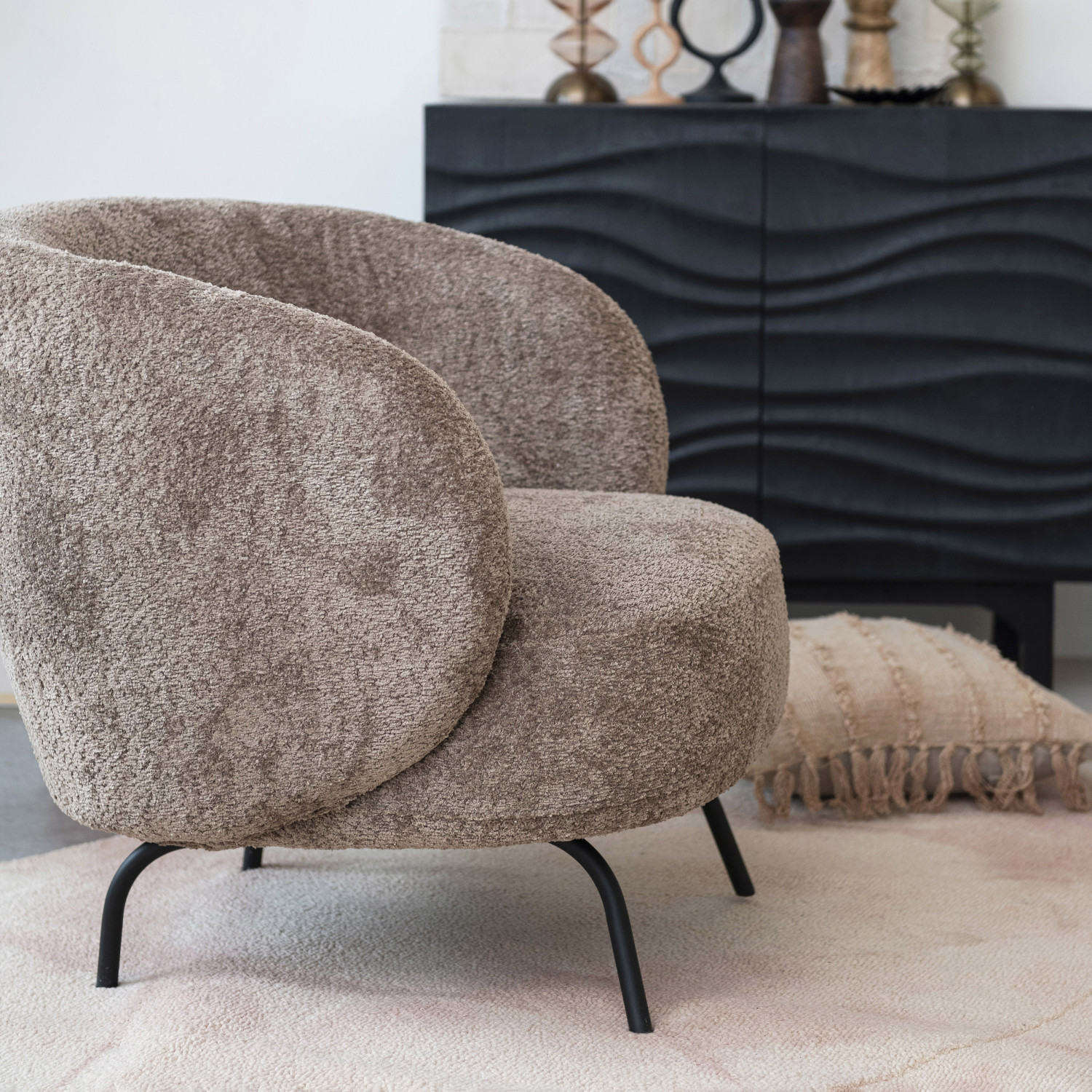 This taupe bouclé fabric upholstered chair with black metal legs is a modern and cozy addition to the home. The taupe bouclé fabric seat provides a plush and textured feel, while the black metal frame adds a contrast and elegance. The chair is ideal for adding a touch of Scandinavian, boho, global, or modern sophistication to any space. Use it as a comfortable and stylish seating option in the living room, bedroom, office, or entryway. The chair comes fully assembled and ready to use. The seat is made of plush and textured bouclé fabric and the frame is made of sturdy and sleek metal.