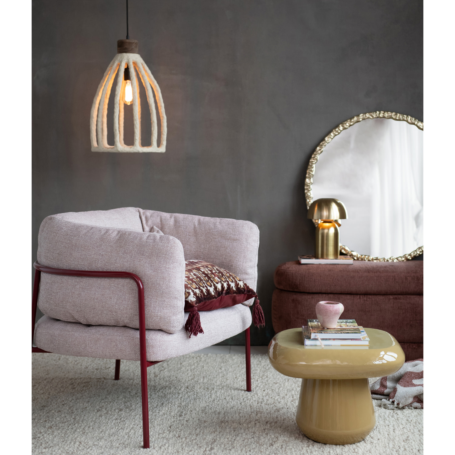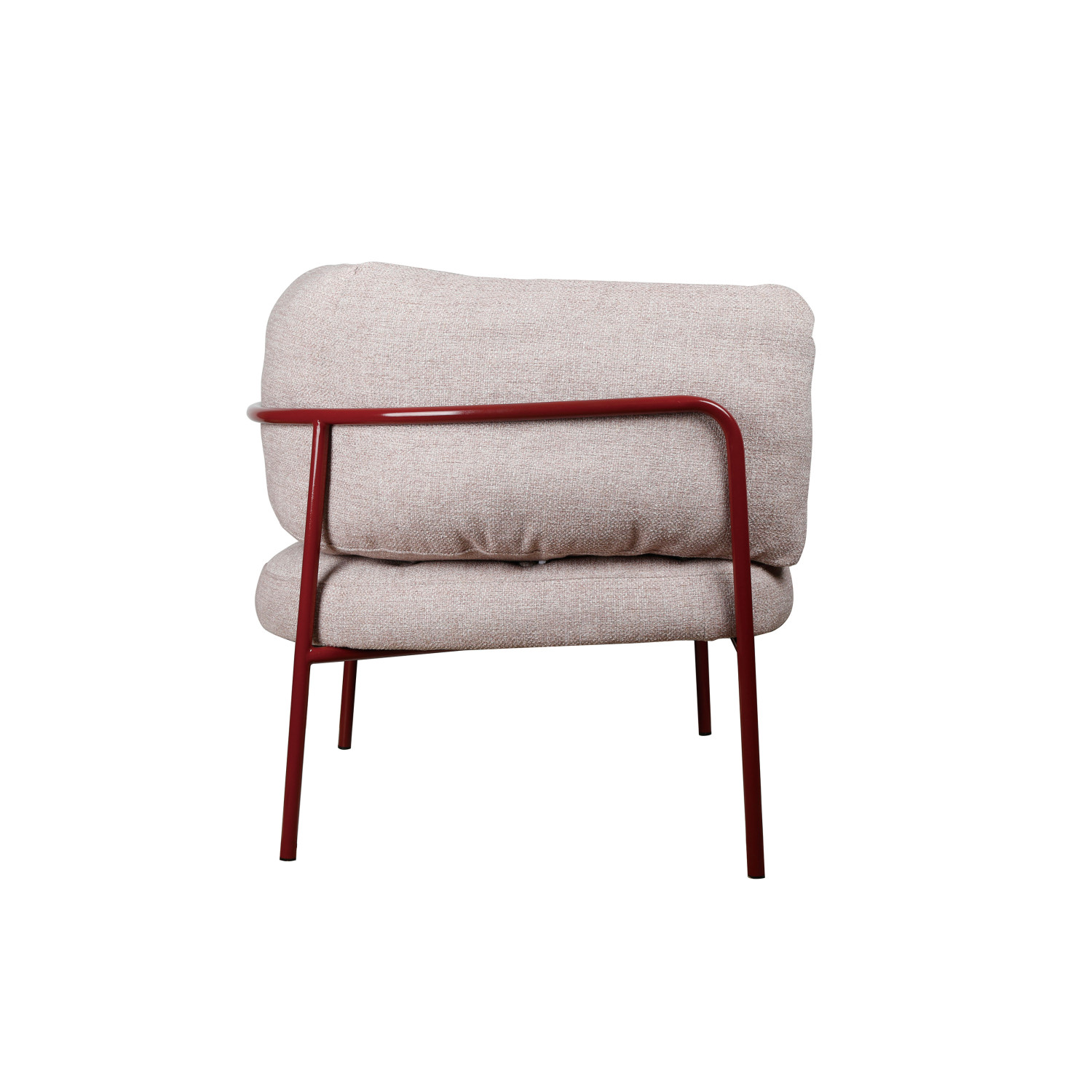Catalog Name: 31"W x 34-1/2"D x 30-3/4"H Cotton Slub Fabric Upholstered Chair w/ Powder Coated Metal Legs & Lumbar Pillow, Burgundy & Natural, Truck Ship