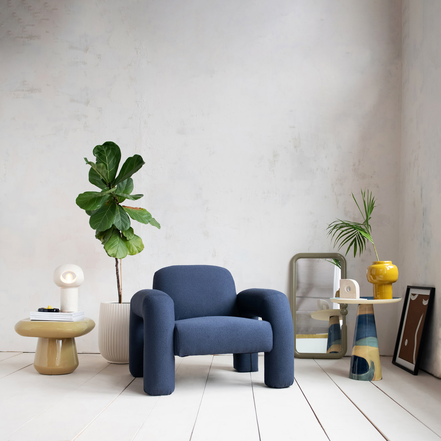 Catalog Name: 35-1/2"W x 31-3/4"D x 29-1/2"H Chenille Fabric Upholstered Chair, Blue, KD