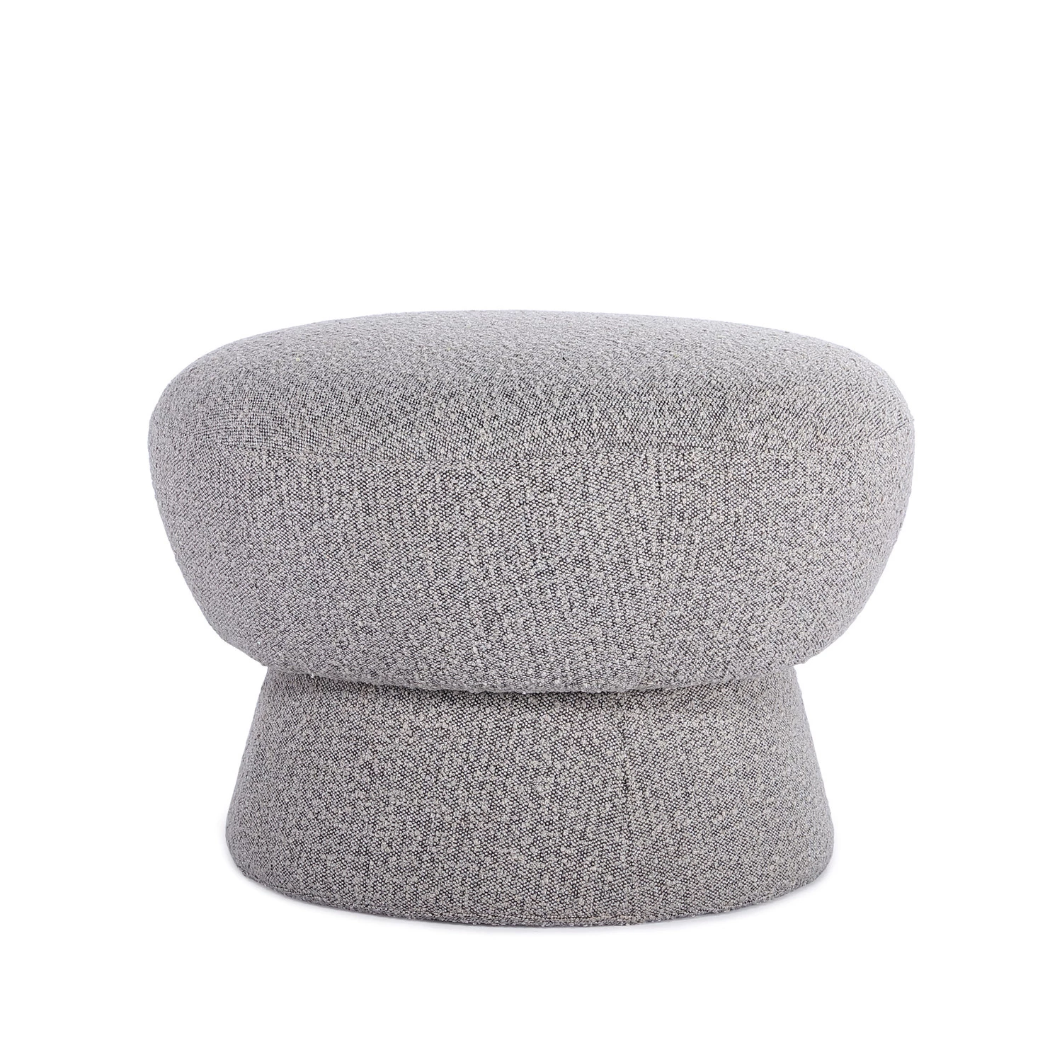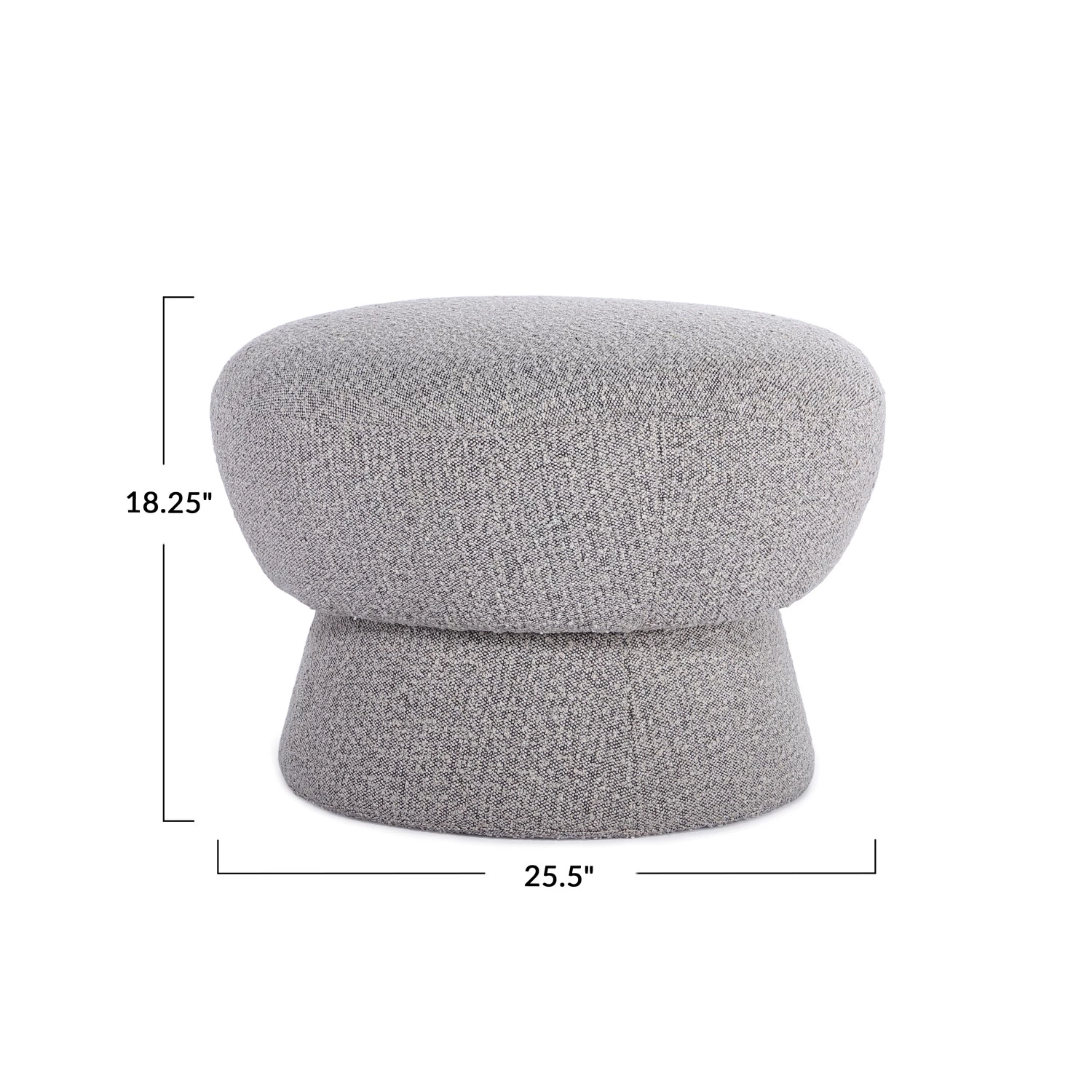 Catalog Name: 25-1/2" Round x 18-1/4"H Bouclé Fabric Upholstered Ottoman, Heathered Grey, Truck Ship