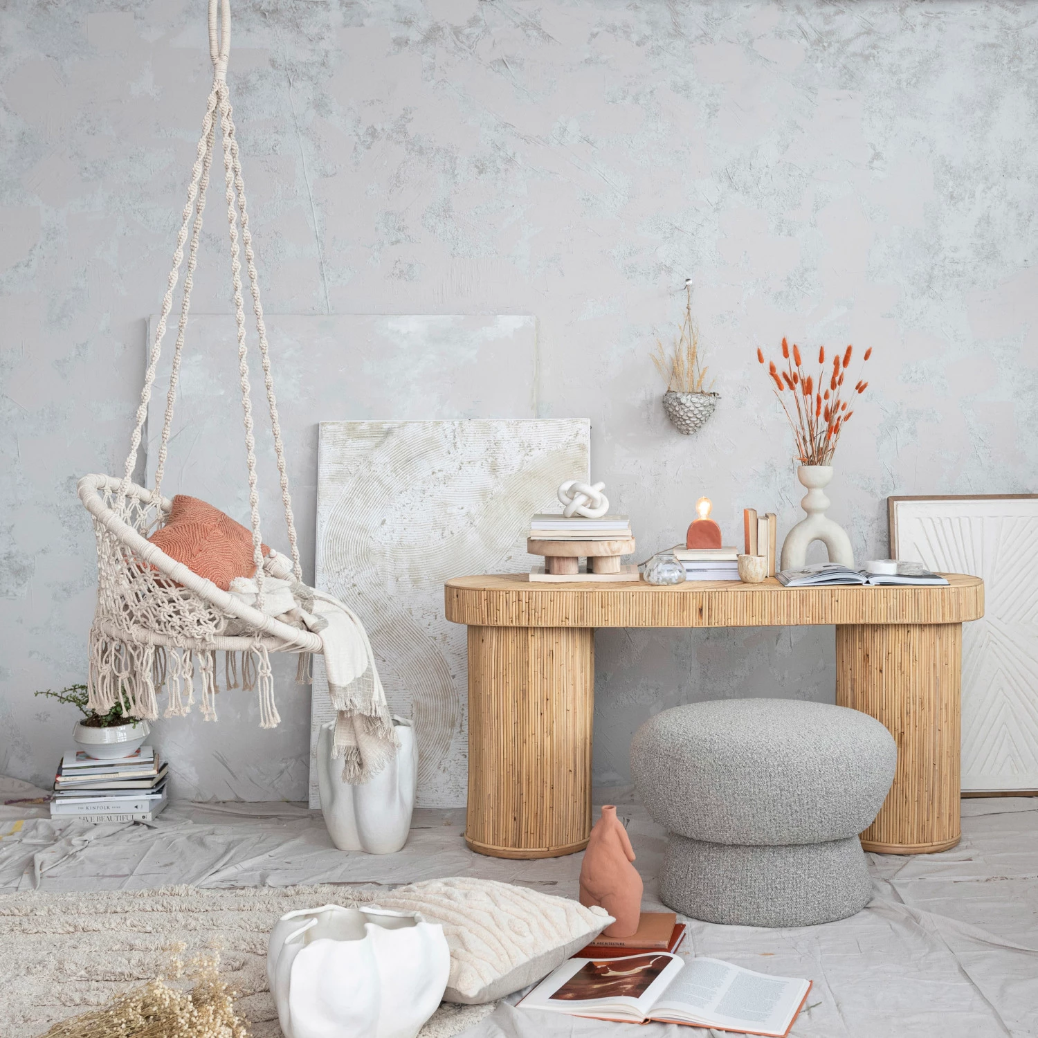 Create a space you love with our thoughtfully designed collection of alternative seating. Explore a carefully curated selection of pieces including entryway benches, day beds, poufs, foot stools, upholstered ottomans, folding stools, and so much more. Choose from a wide array of materials from supple velvet and intricately woven jute to reclaimed wood and hammered metal, and styles from mid-century modern and classic farmhouse to vintage glam and contemporary boho. Anchor the design of a living space with a statement-making focal piece, or simply add touch of personal style to a spare room with an artfully crafted piece of furniture. This modern ottoman showcases a unique, mid-century inspired silhouette finished with stylish boucle upholstery. Display in a bedroom or living space of any style from Scandinavian to modern. Spot clean only. Made from foam and eucalyptus wood.