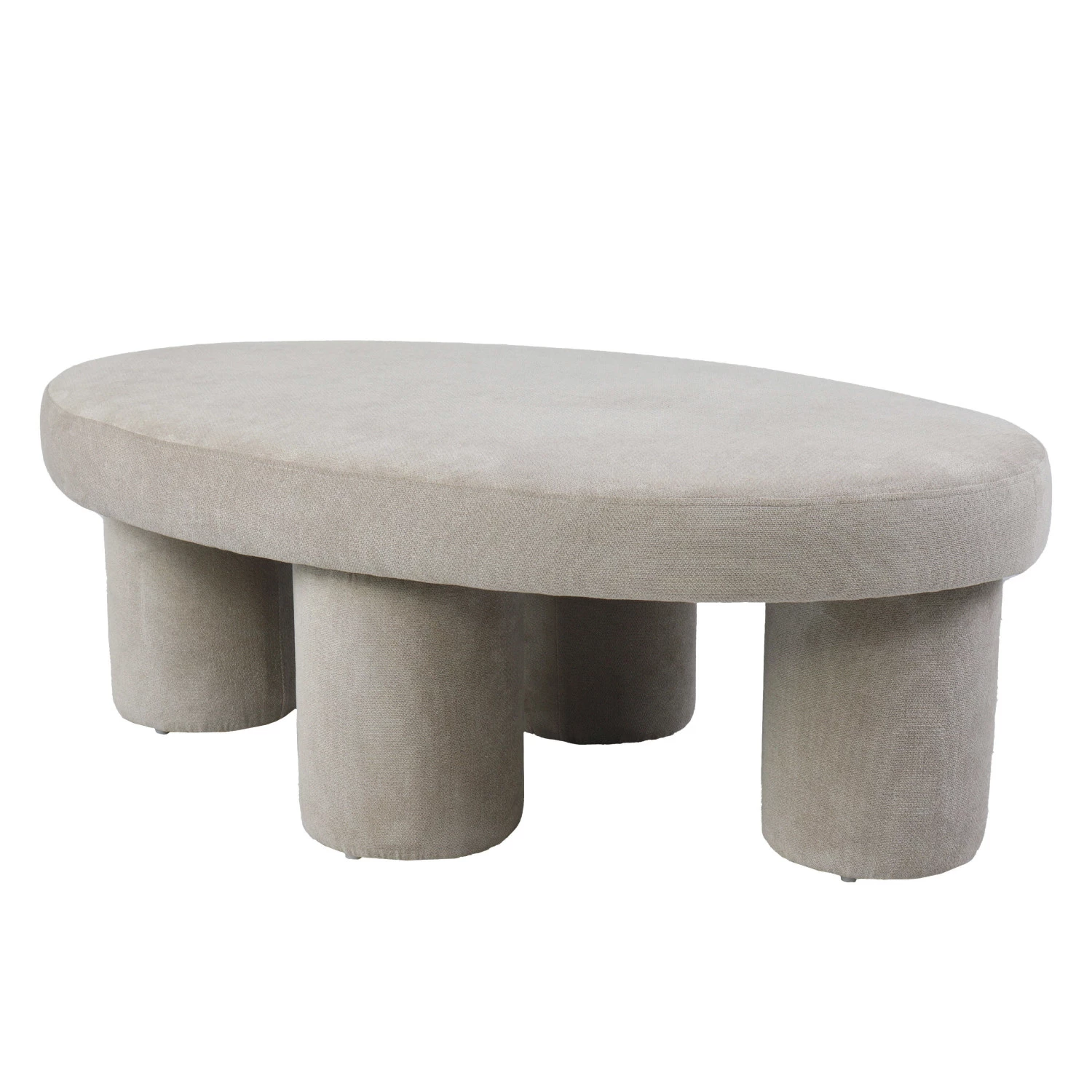 This Fabric Upholstered Table in grey offers a blend of elegance and versatility, featuring a sturdy pine wood base and soft foam and polyester upholstery. Measuring 45.75 inches in length, 28 inches in width, and 16.75 inches in height, this piece can function as both a table and a stool chair, making it ideal for contemporary living spaces. Fully assembled and ready for use, it is shipped securely via truck. This multi-functional table with a pine wood base transforms any living space, serving as both a stylish table and a comfortable stool chair.