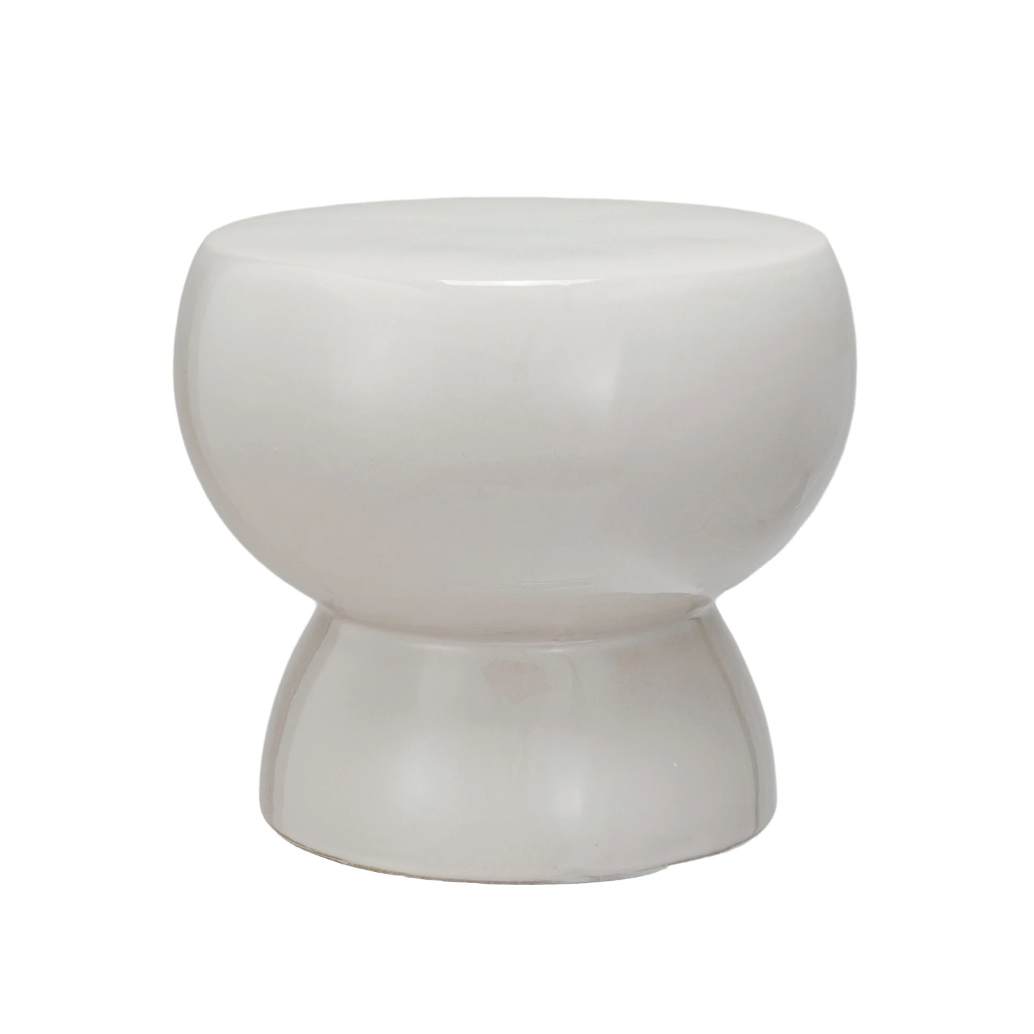 Catalog Name: 12" Round x 10-1/4"H Stoneware Stool/Pedestal, Reactive Glaze, Cream Color, Truck Ship (Each One Will Vary)