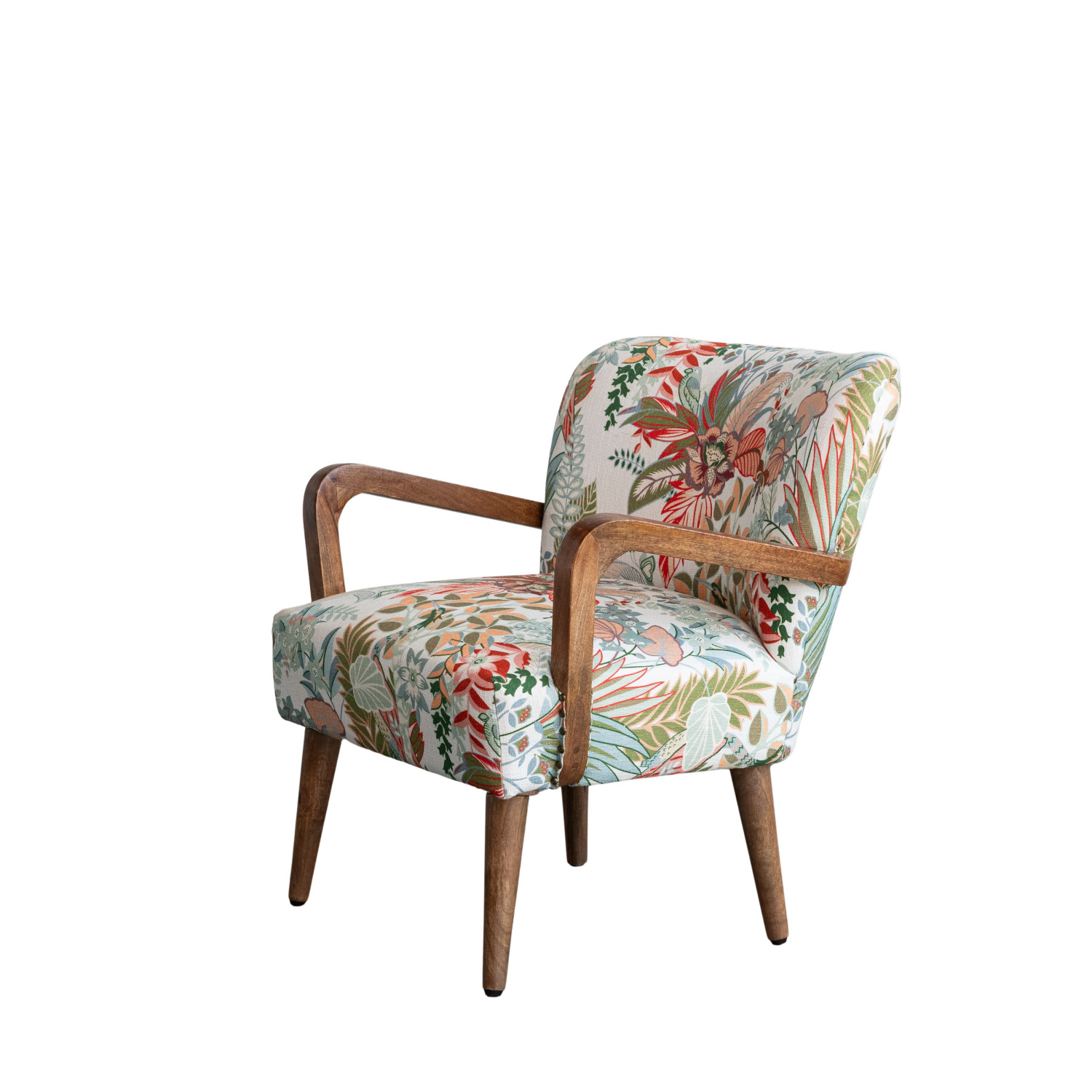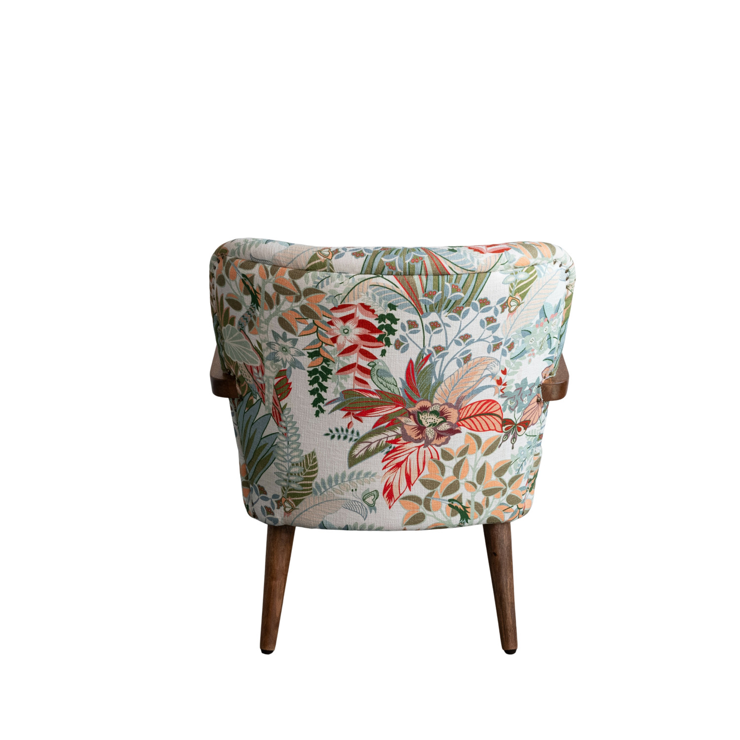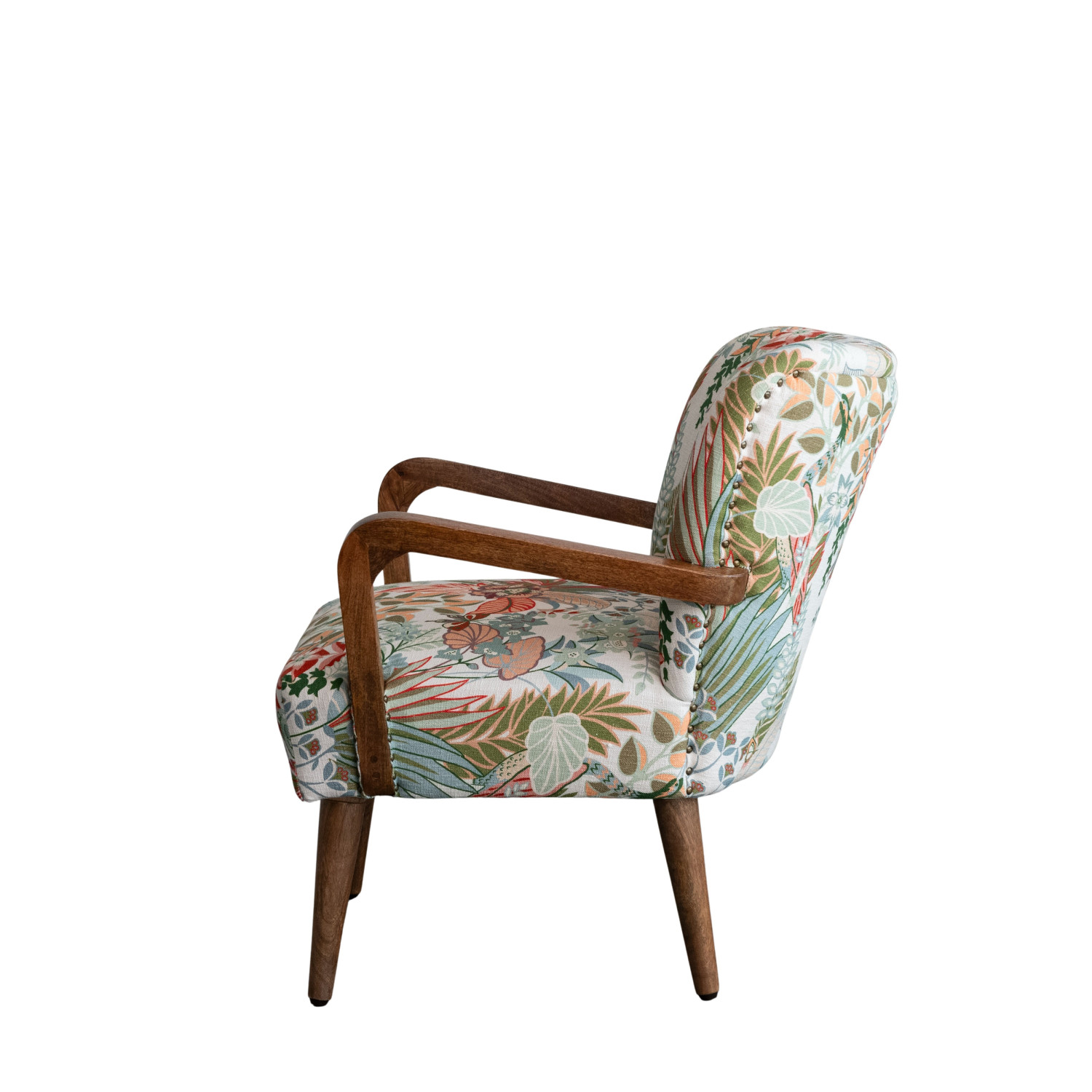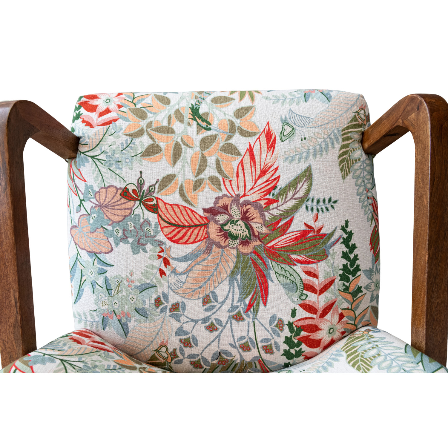 Catalog Name: 28"W x 31"D x 32"H Cotton Slub Printed Upholstered Arm Chair w/ Botanicals, Mango Wood Frame & Nail Heads, Multi Color, KD, Truck Ship