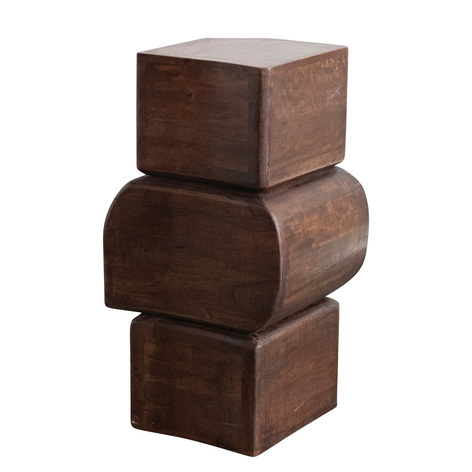 Catalog Name: 11-3/4"W x 10-1/2"D x 22"H Mango Wood Stacked Table/Stool, Walnut Finish