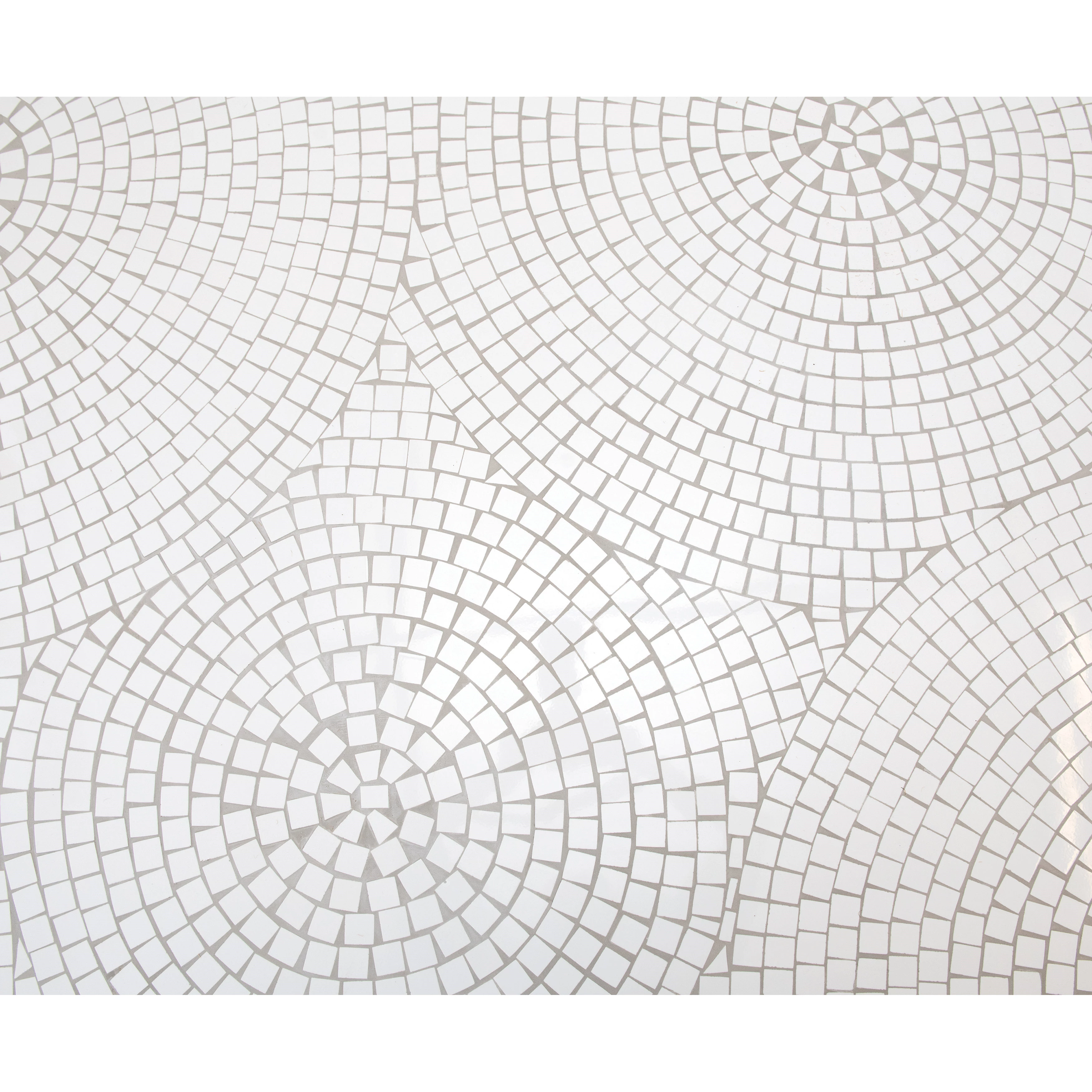This sleek metal accent table features an intricately pieced mosaic top. Black metal table with white mosaic top. Add a touch of functional style to any living room or covered patio with this beautiful table. Made from iron and ceramic glazed tile.