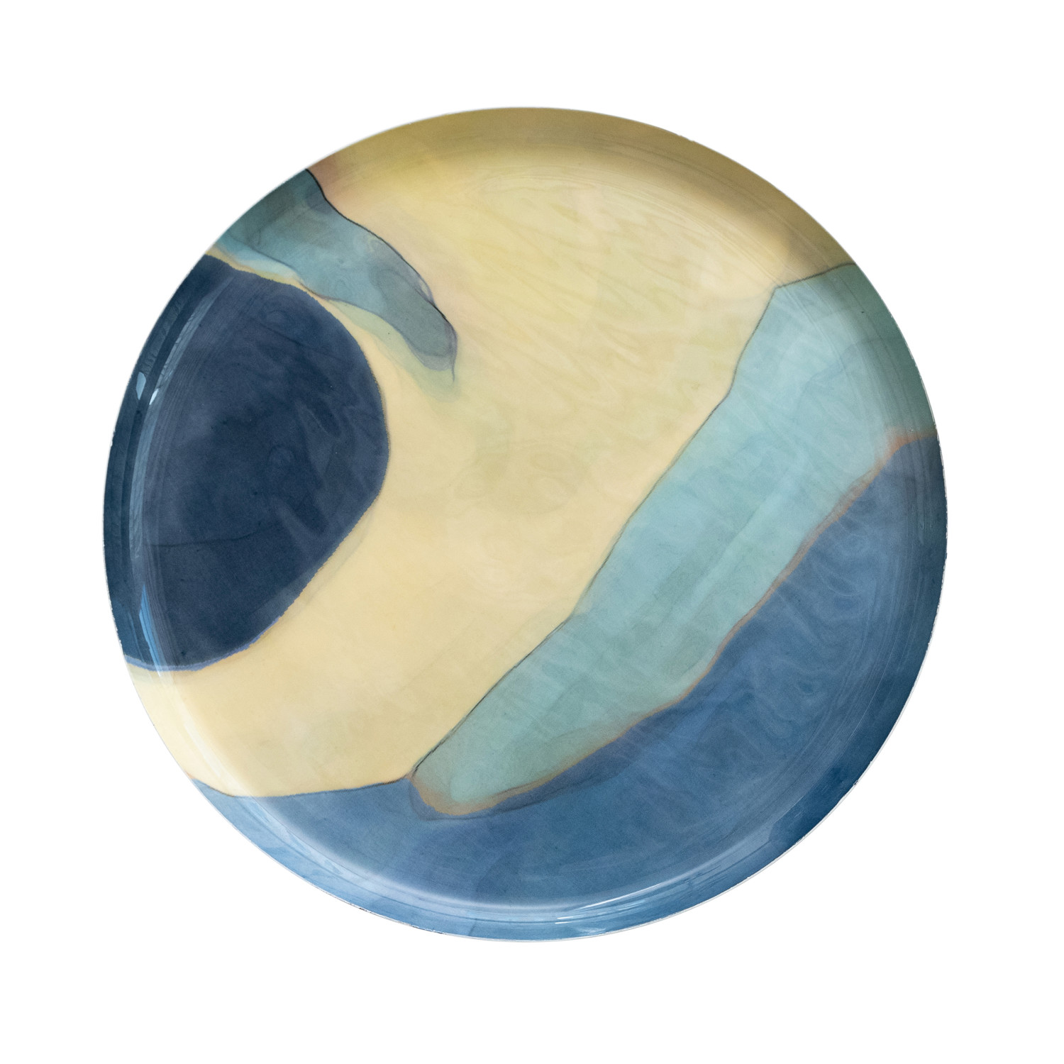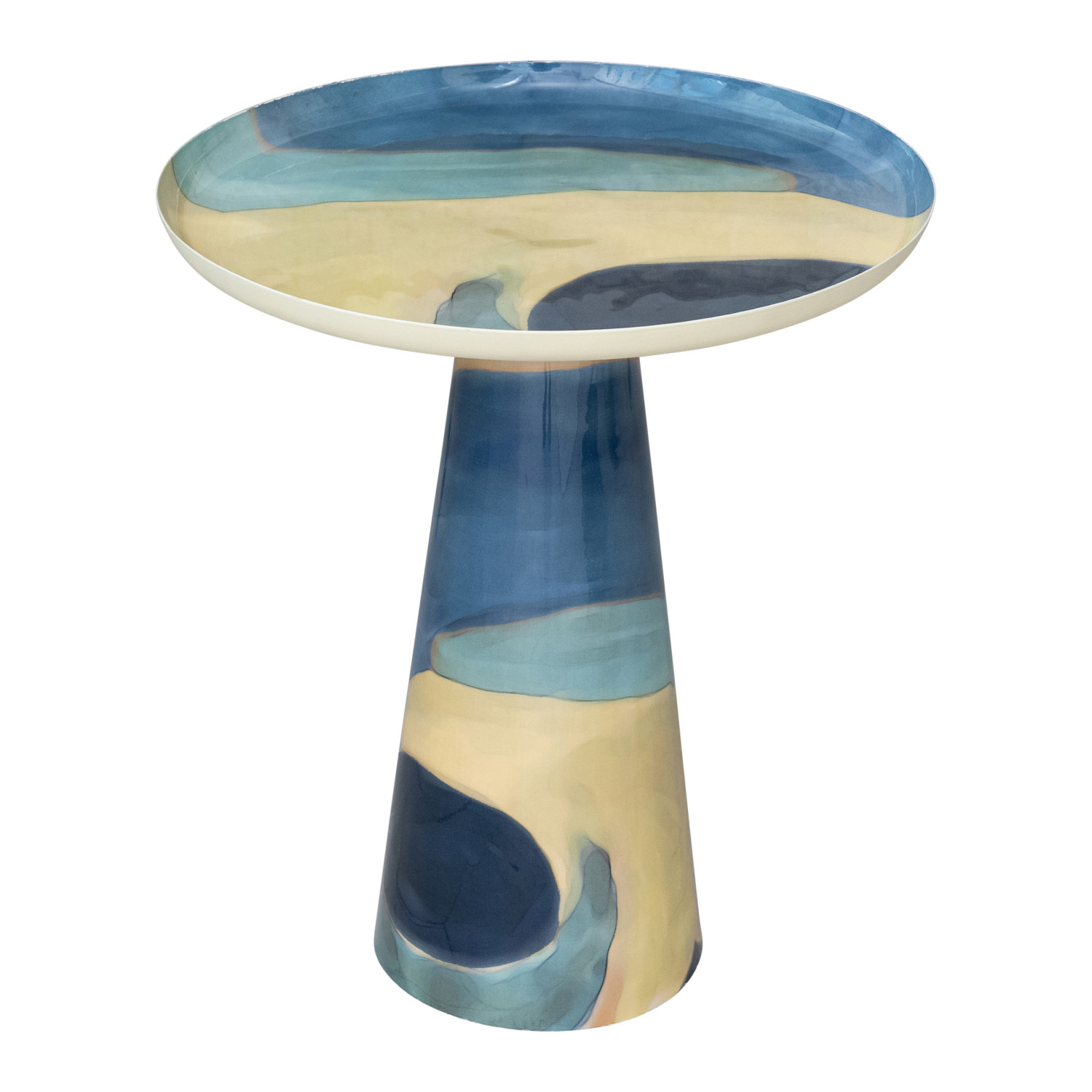Enameled Metal Table w/ Abstract Design, Blue & Cream Color, KD (Each One Will Vary)