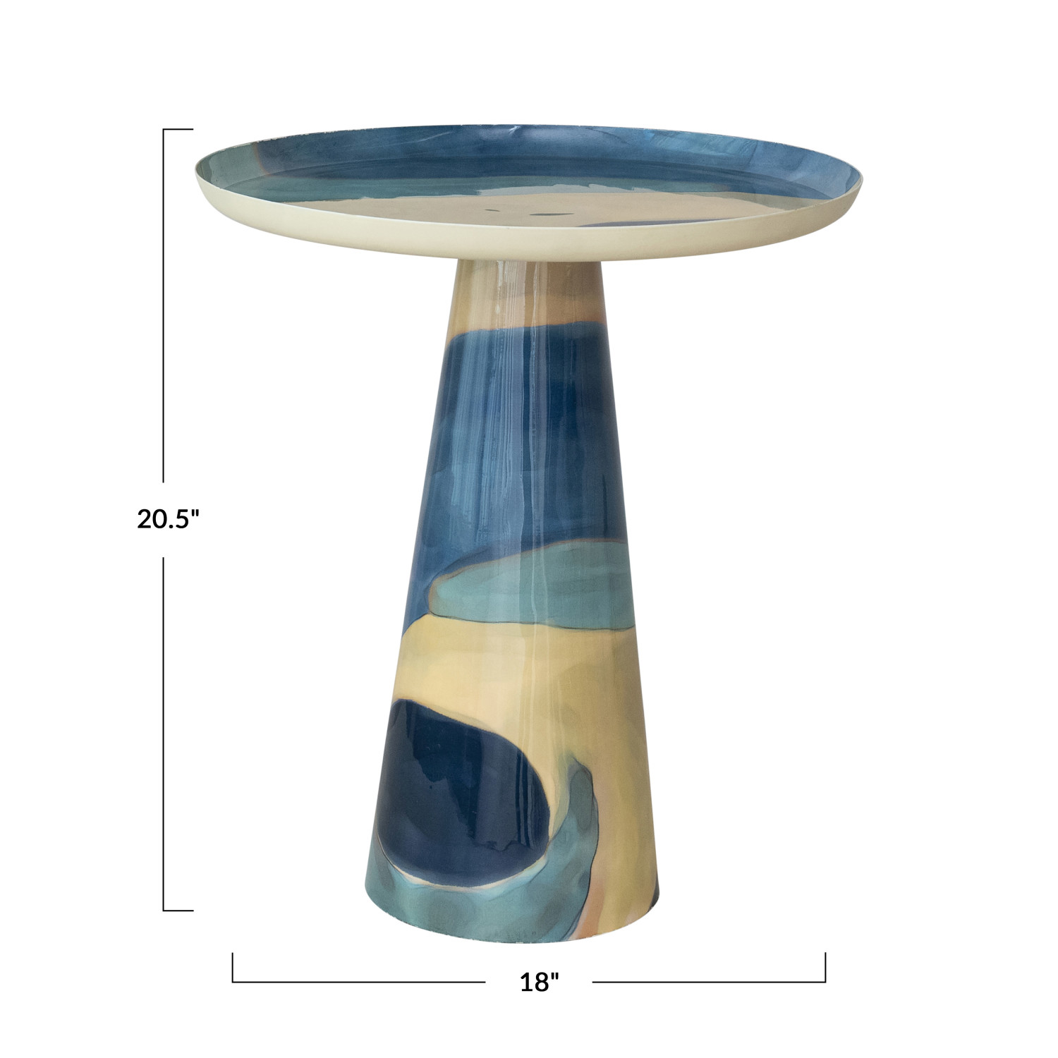 Catalog Name: 18" Round x 20-1/2"H Enameled Metal Table w/ Abstract Design, Blue & Cream Color, KD (Each One Will Vary)
