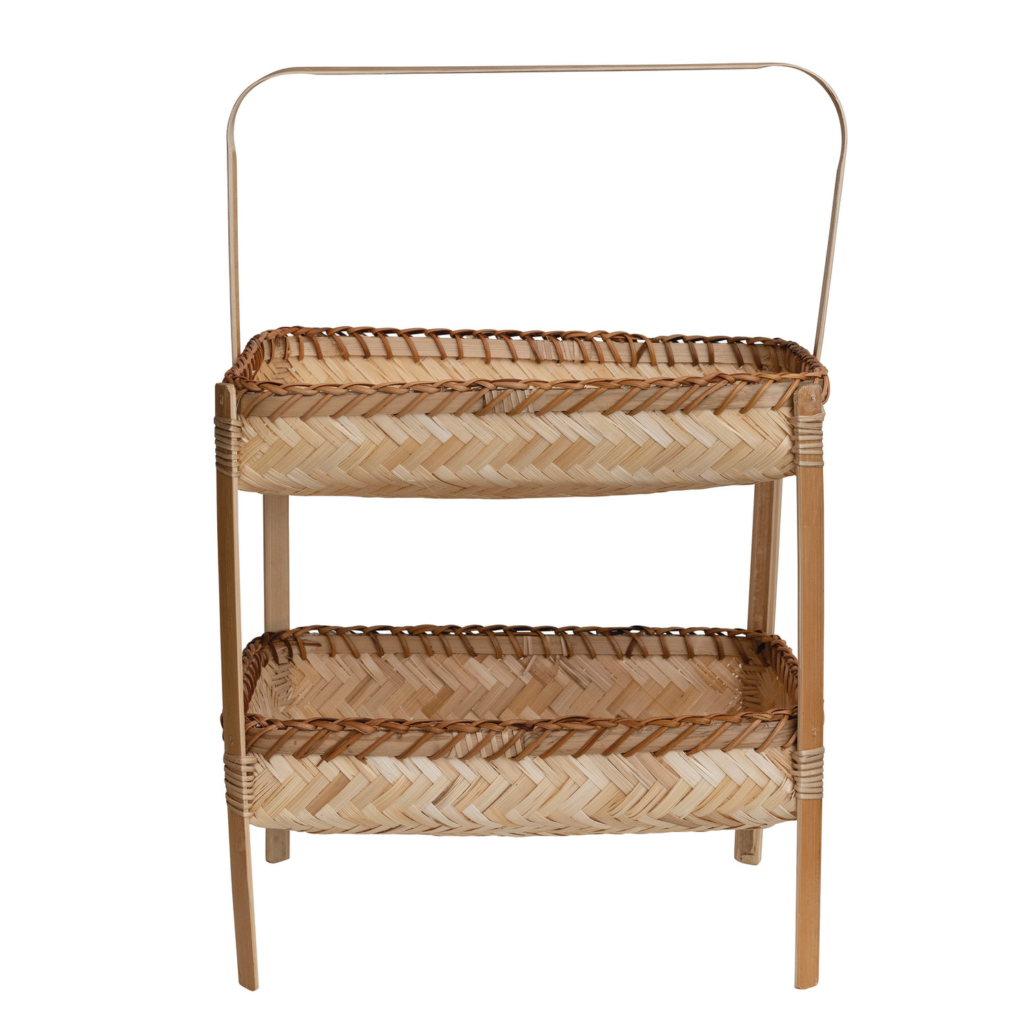 Catalog Name: 13-3/4"L x 9-3/4"W x 20-3/4"H Decorative Hand-Woven Bamboo 2-Tier Basket w/ Handle, Natural
