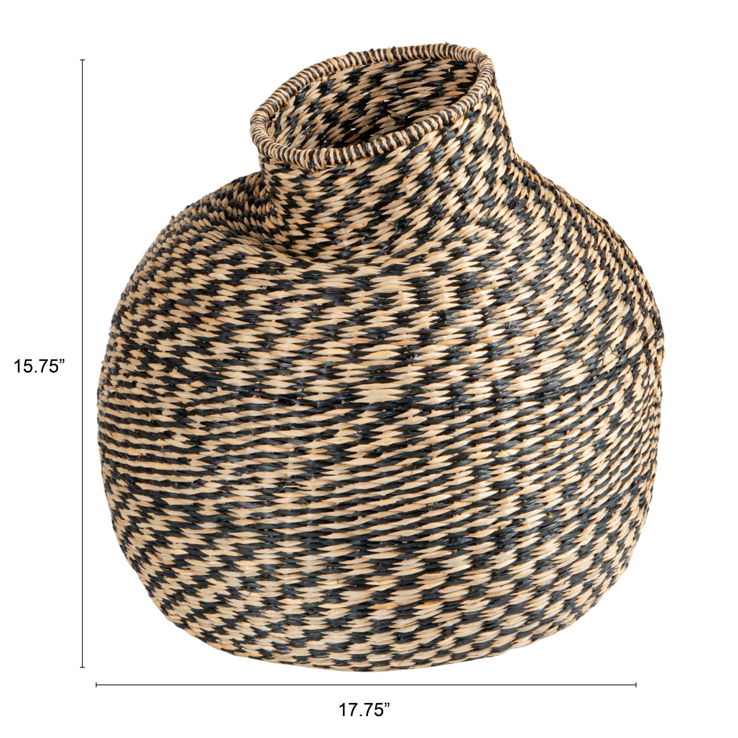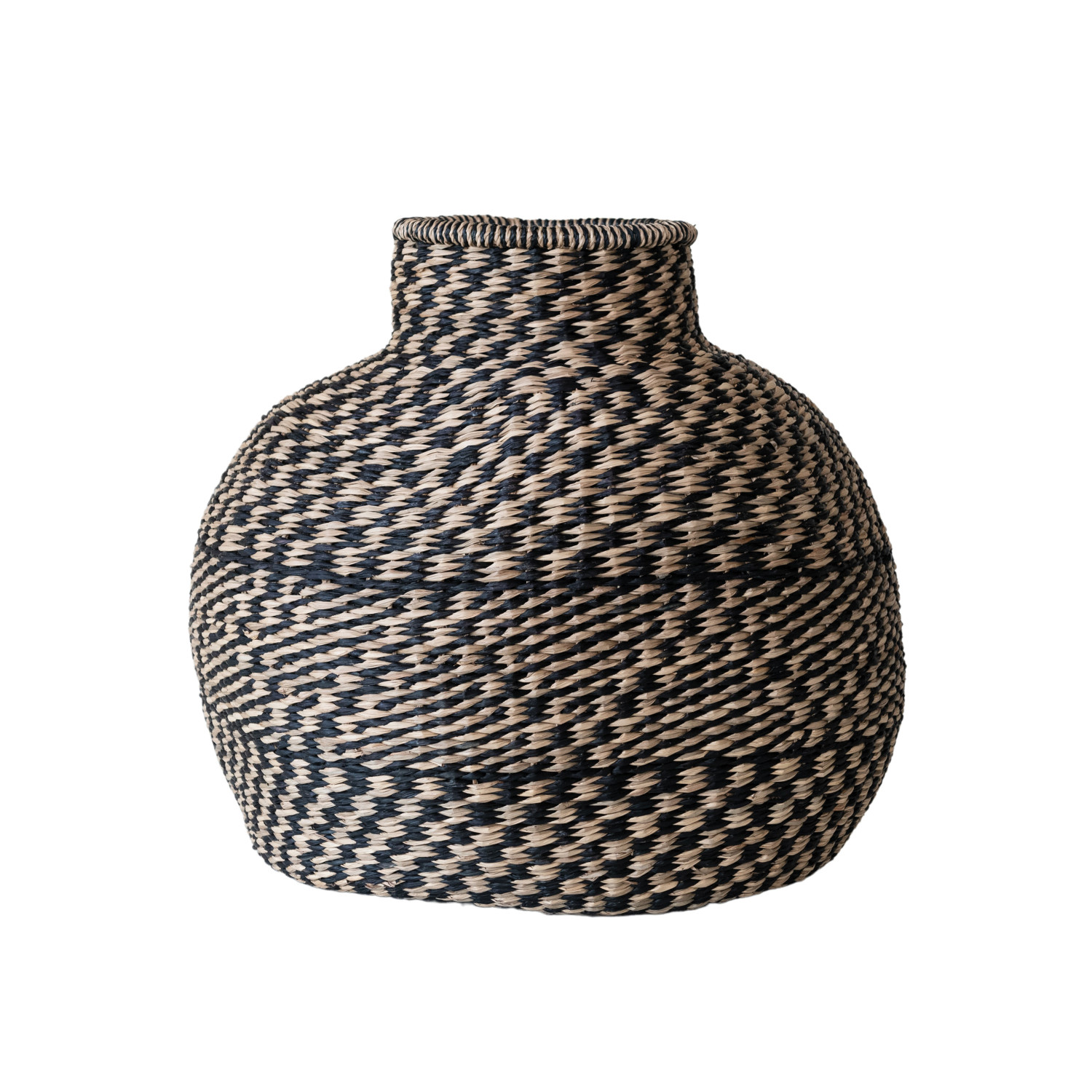 Catalog Name: 17-3/4" Round x 15-3/4"H Decorative Hand-Woven Seagrass Basket/Vase w/ Pattern, Natural & Black