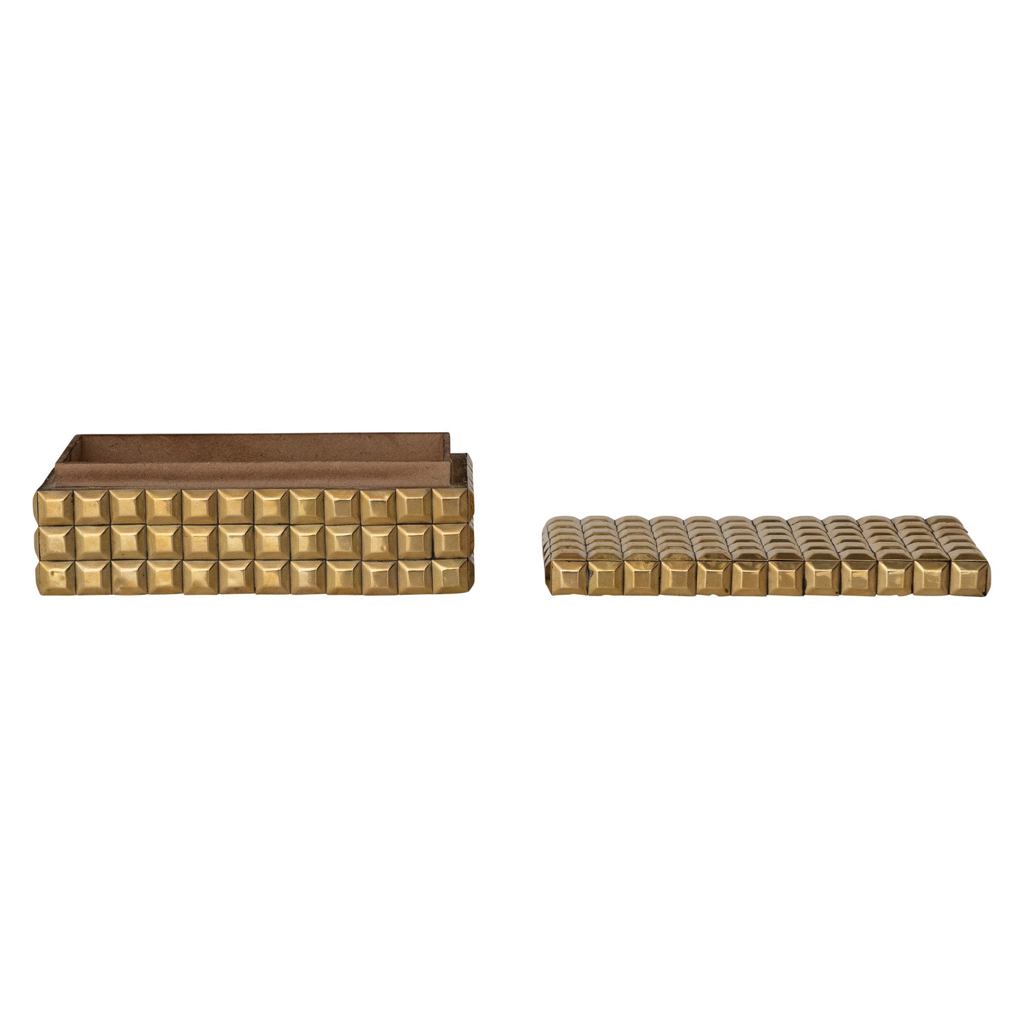 Catalog Name: 5-3/4"L x 3"W x 2"H MDF & Brass Studded Box, Gold Finish