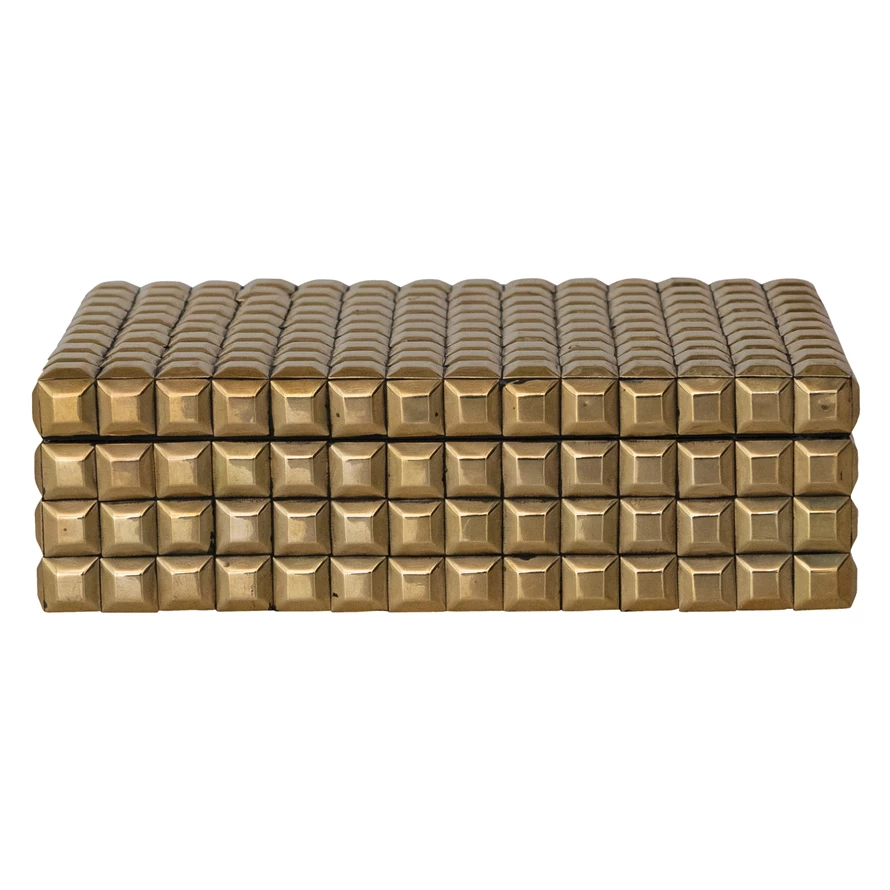 Catalog Name: 6-3/4"L x 5"W x 2"H MDF & Brass Studded Box, Gold Finish