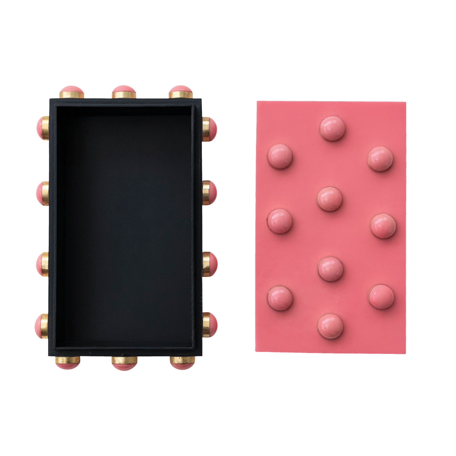 MDF, Resin & Brass Studded Box, Pink & Gold Finish